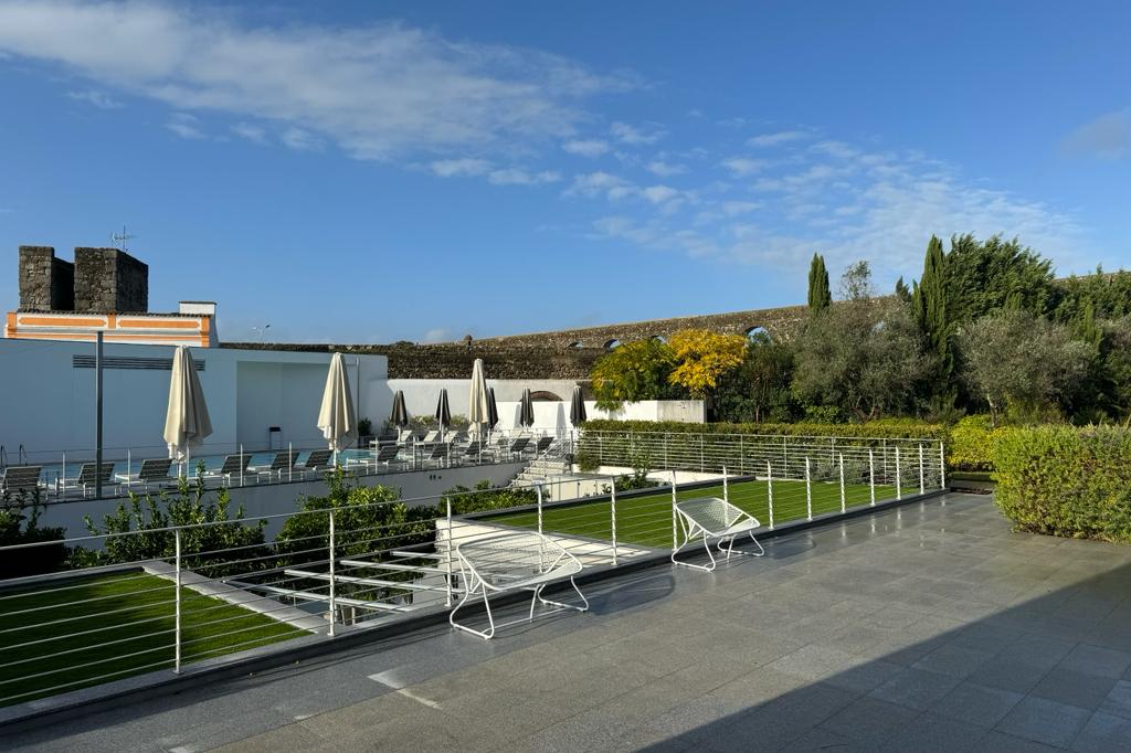 One of the highlights of this hotel is its picturesque location along the ancient Agua de Prata Aqueduct, offering views of this architectural wonder. The center of Évora, with its boutiques and restaurants, is within walking distance, and the hotel even offers complimentary parking in the garage under the outdoor swimming pool.