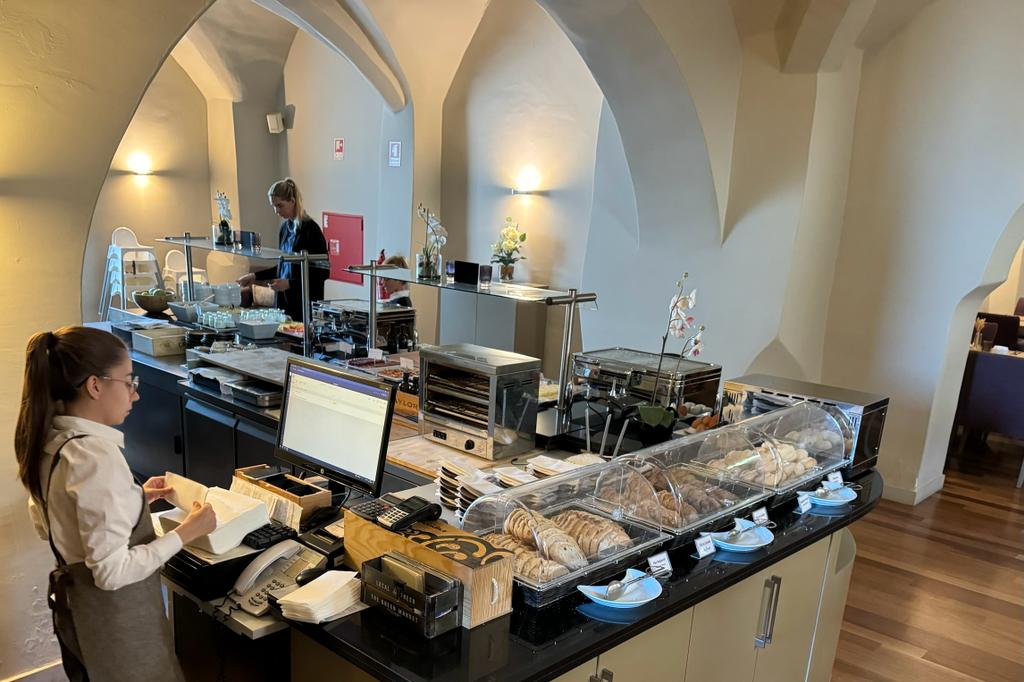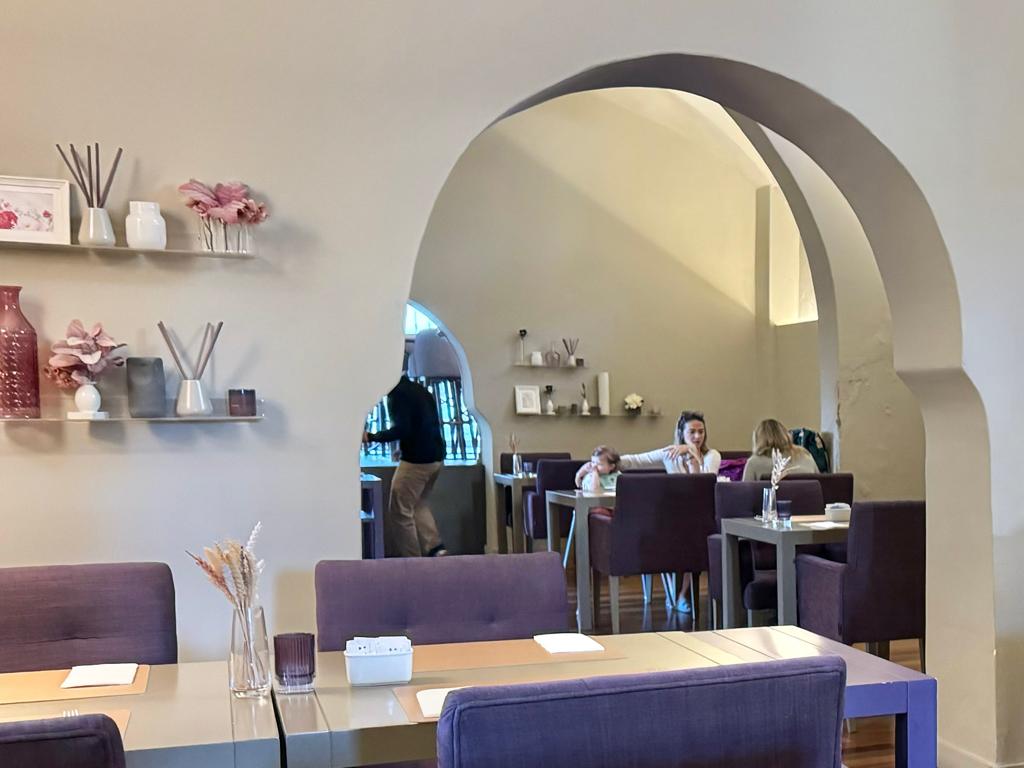 The extensive breakfast with gluten-free options in the old chapel is a treat, although the luxery restaurant Degust'Ar in this location may not meet everyone's expectations. Fortunately, there are plenty of cozy restaurants within walking distance to explore.
