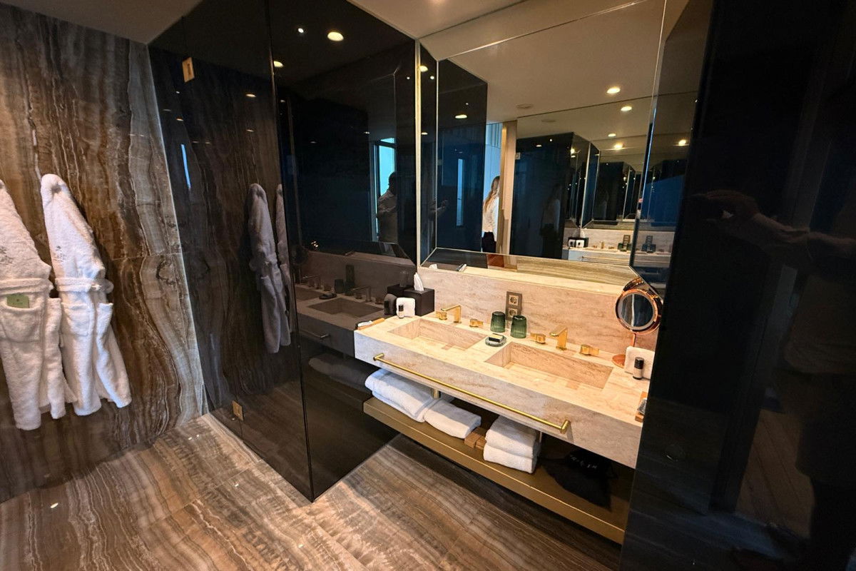 The hotel occupies a 19th-century manor house, once the summer residence of a wealthy merchant family. Inside, chandeliers, high ceilings and marble staircases and cozy coffee bar set the tone for timeless elegance. Next to it lies the modern Onice Building, connected by an underground passage. Comfortable, yes – but missing the soul of the historic mansion.