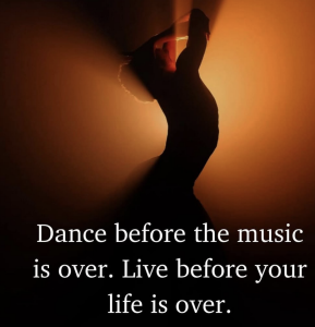 When I was younger? I never dared to dance. At school parties I stood against the wall, far too shy. And now? I’m the first one on the dance floor. Not because I’m so good at it, but because I know how quickly the music can stop. So live now. Do the things you love. Don’t be afraid.