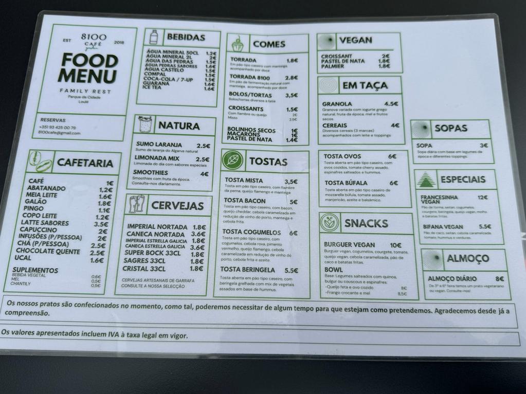 The excellent location, coupled with the friendly service, makes it a must-visit spot in Loulé. A heartfelt shoutout to the dedicated owners, Fernando and Sara, and their welcoming staff, who keep this place running seamlessly. With its all-day service and pet-friendly policy, 8100 Café is an absolute must-see when you're in Loulé.