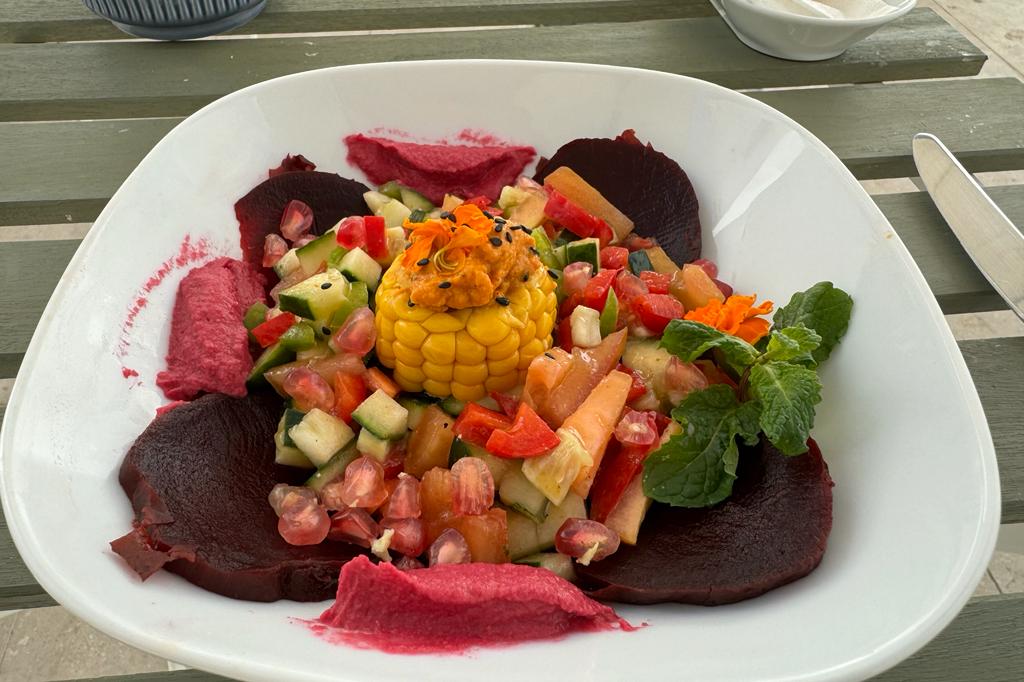 It's a place where you can indulge in a wide array of culinary delights all day long, from breakfast to coffee, lunch, and dinner, with great vegetarian and vegan options.
