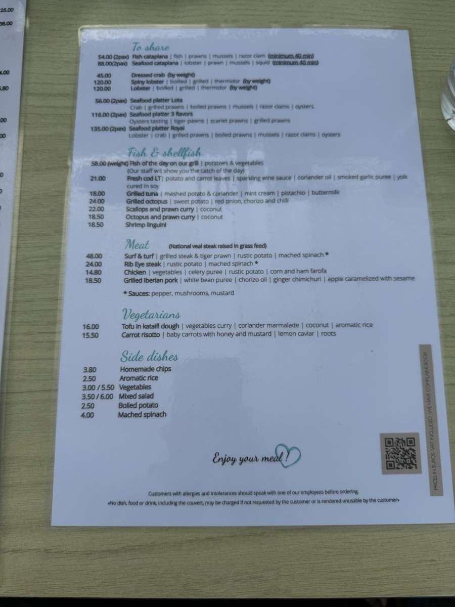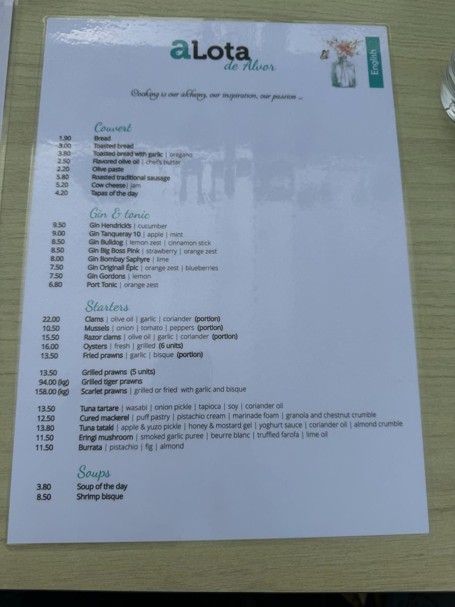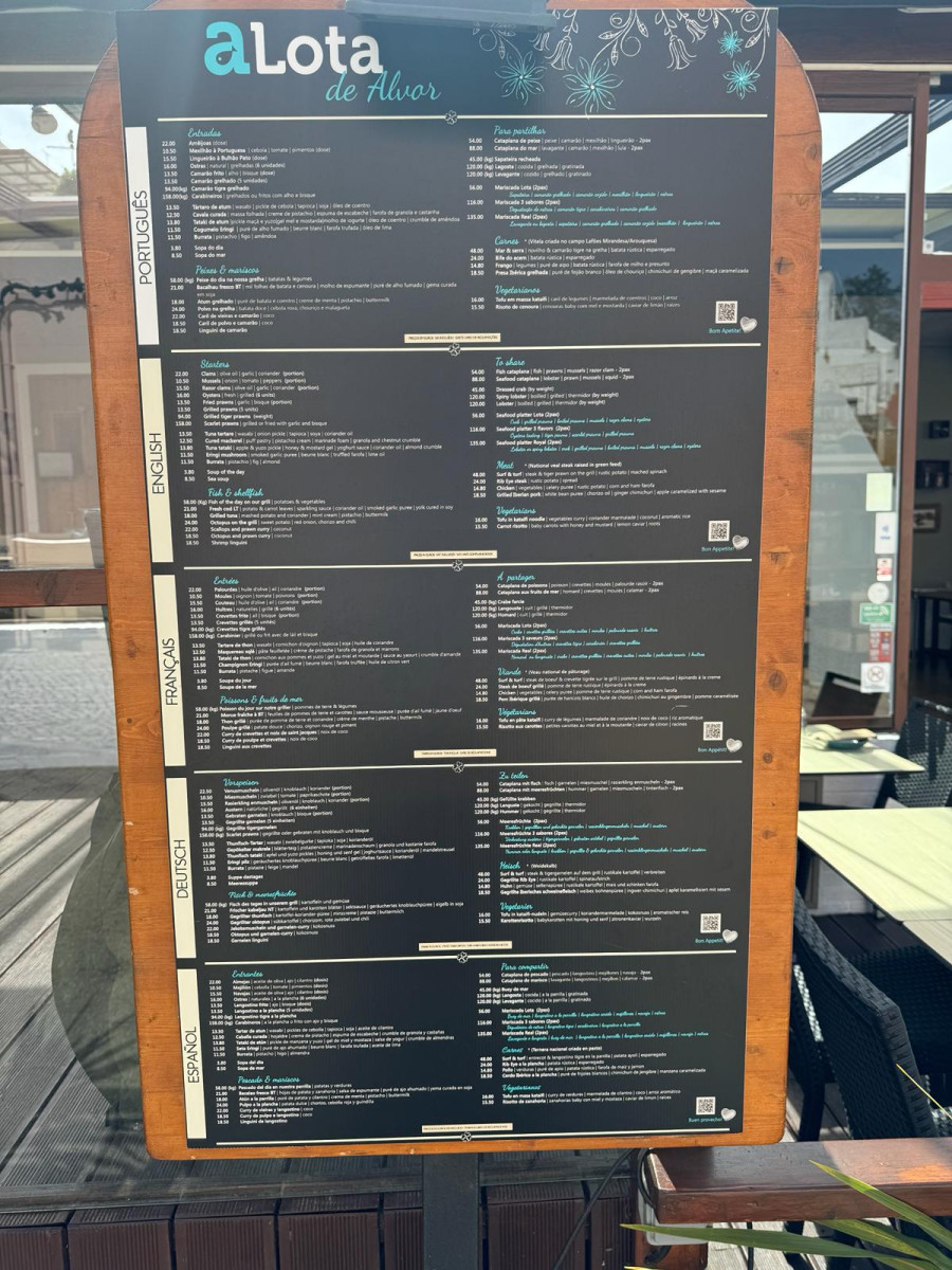 Whether you're craving fresh fish, a rib eye steak (€24) or a delightful vegan option, such as the tofu roll with curry sauce (€16) or the carrot risotto (€15.50), A Lota de Alvor does not disappoint. The prices are fair and transparent.
