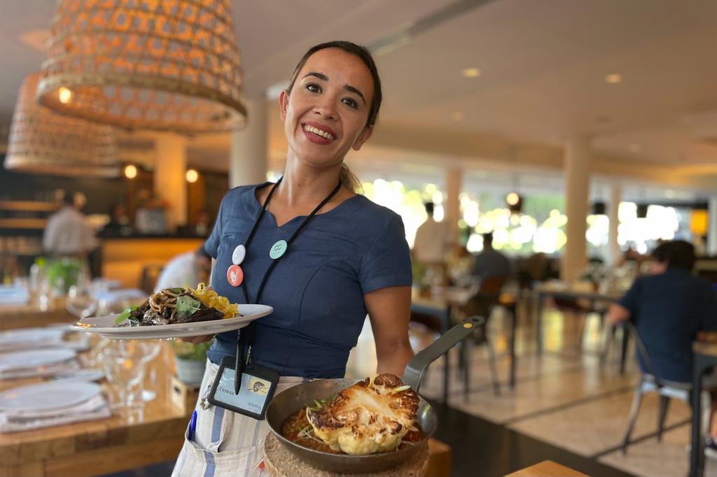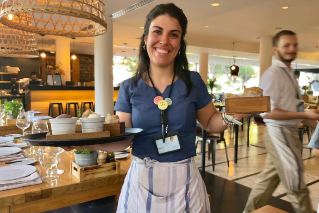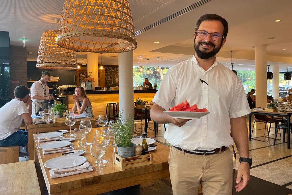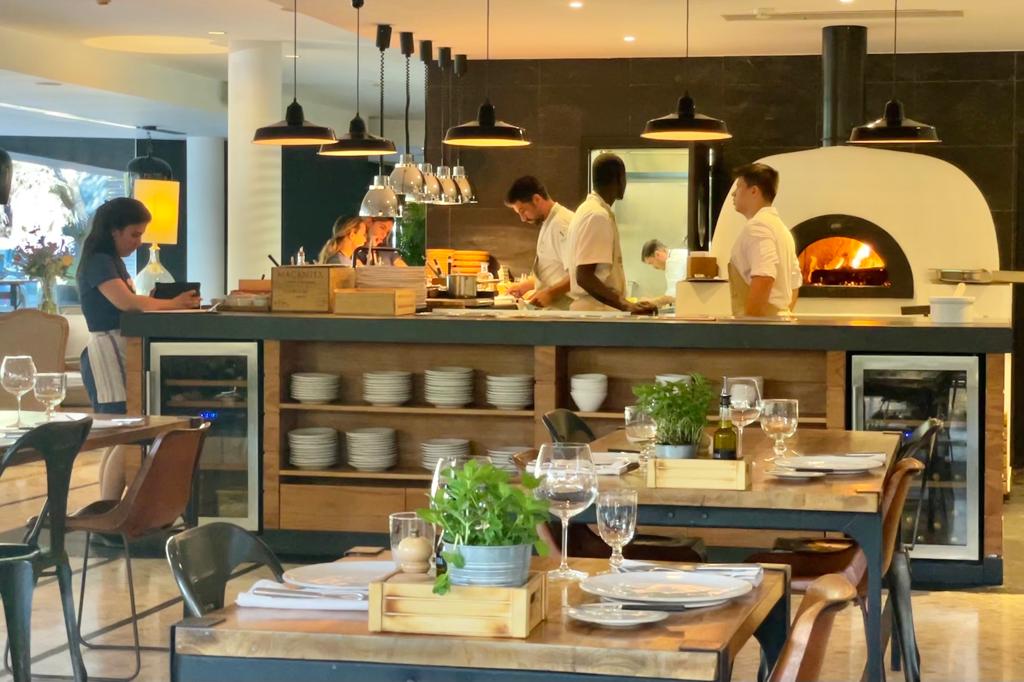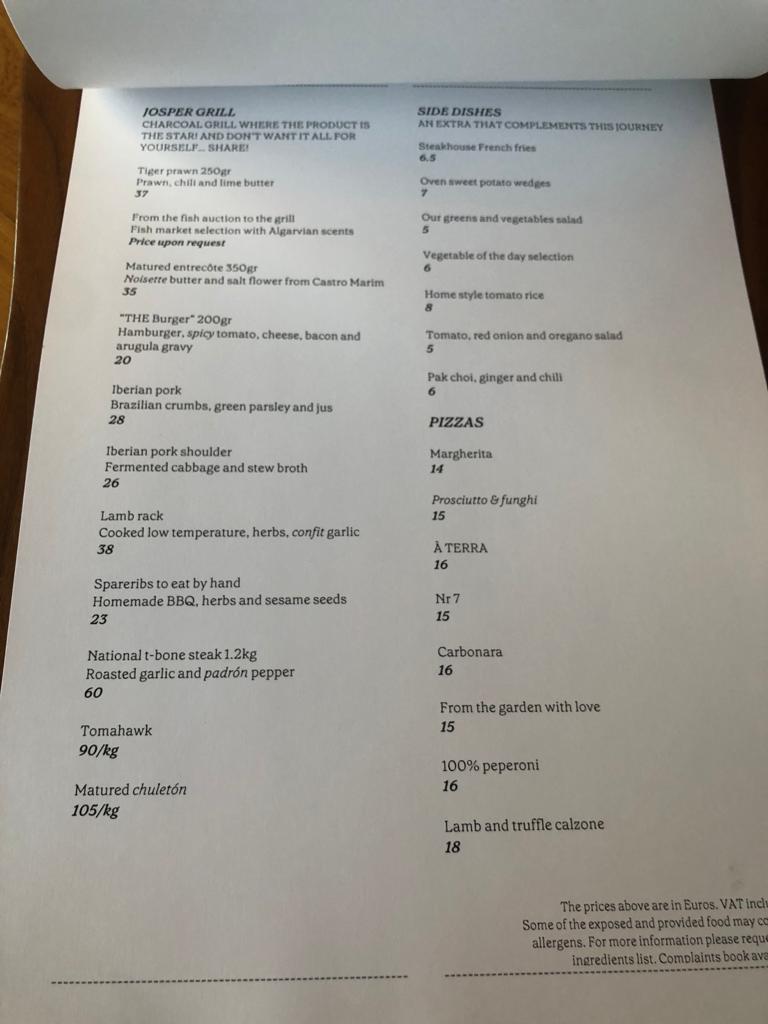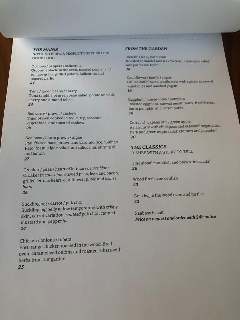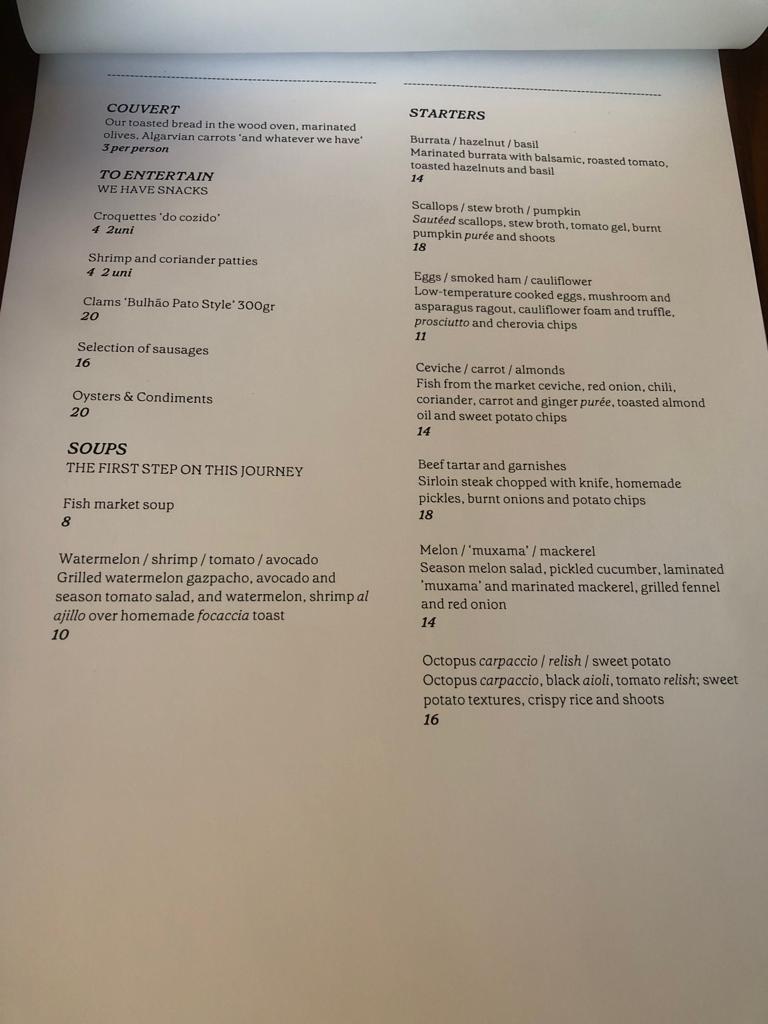 Upon arrival, we were pleased to find ample free parking right in front of the hotel. Stepping through the main entrance of Octant Praia Verde Hotel, we entered a stylish lounge area that led us to the restaurant. The interior had a trendy and industrial design, creating a modern and inviting atmosphere. One notable feature was the half-open kitchen, seamlessly flowing into a cooking buffet with a large fire oven, allowing guests to witness the skilled chefs in action at all times. Chef David Domingues, who presides over the kitchen, ensures every plate meets the highest standards before it reaches the guests. This attention to detail truly sets this restaurant apart.