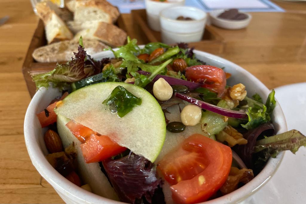 Moving on to the starters, I indulged in a fantastic salad that I can confidently say was the best salad I have ever tasted. The salad boasted a vibrant array of colors, generously filled with an assortment of nuts, mushrooms, and more. It was a delightful medley of flavors and textures, and at just 5 euros, it was a steal! My companion enjoyed a vegan vegetable soup made from seven different vegetables, which was equally delightful and satisfying.