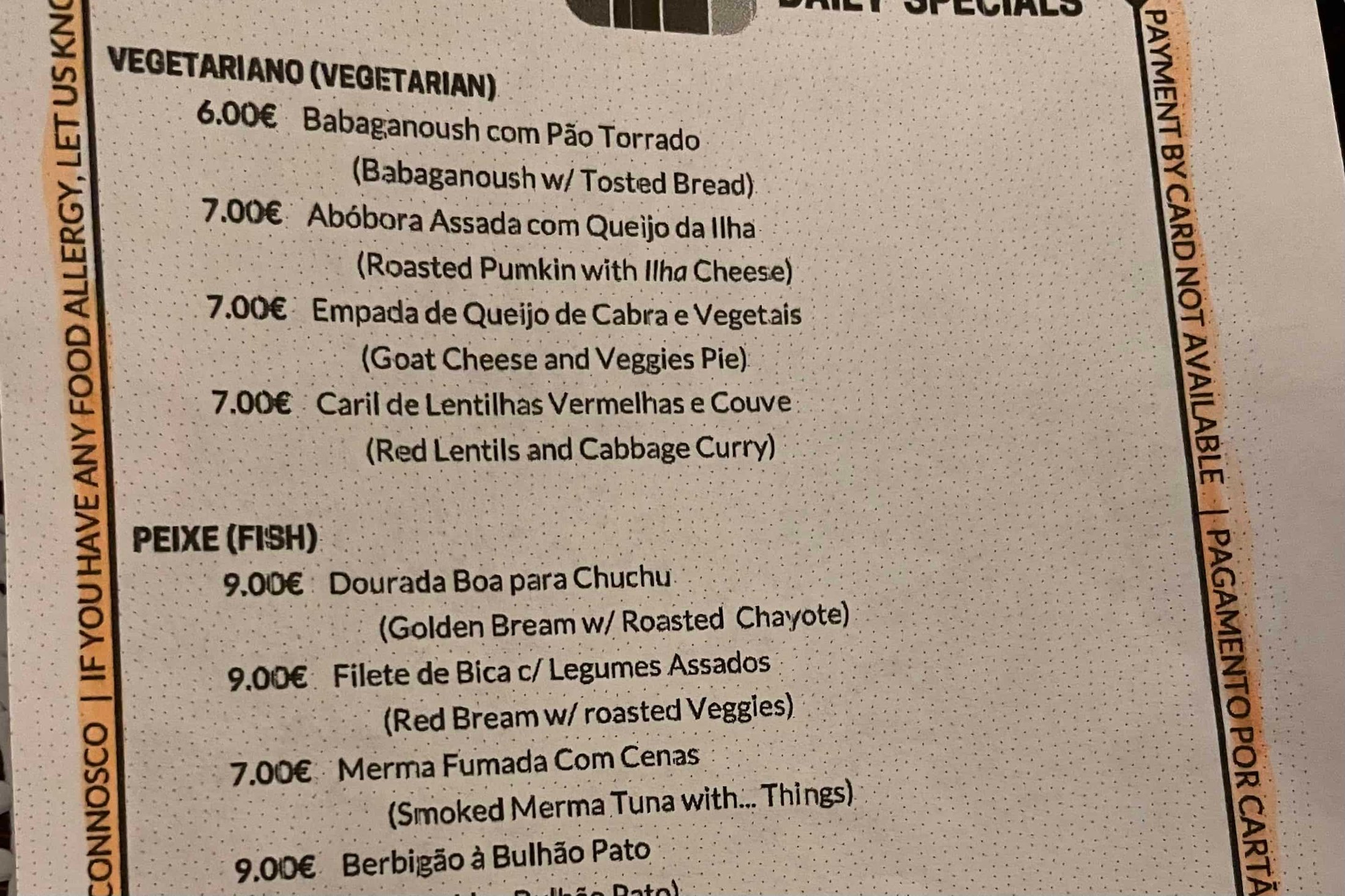 The soup costs only 2 euros and a bottle of good wine 10 euros. Besides fish and meat, there are 7 vegetarian and vegan dishes on the menu. It is also clear indicated what does and does not contain gluten.