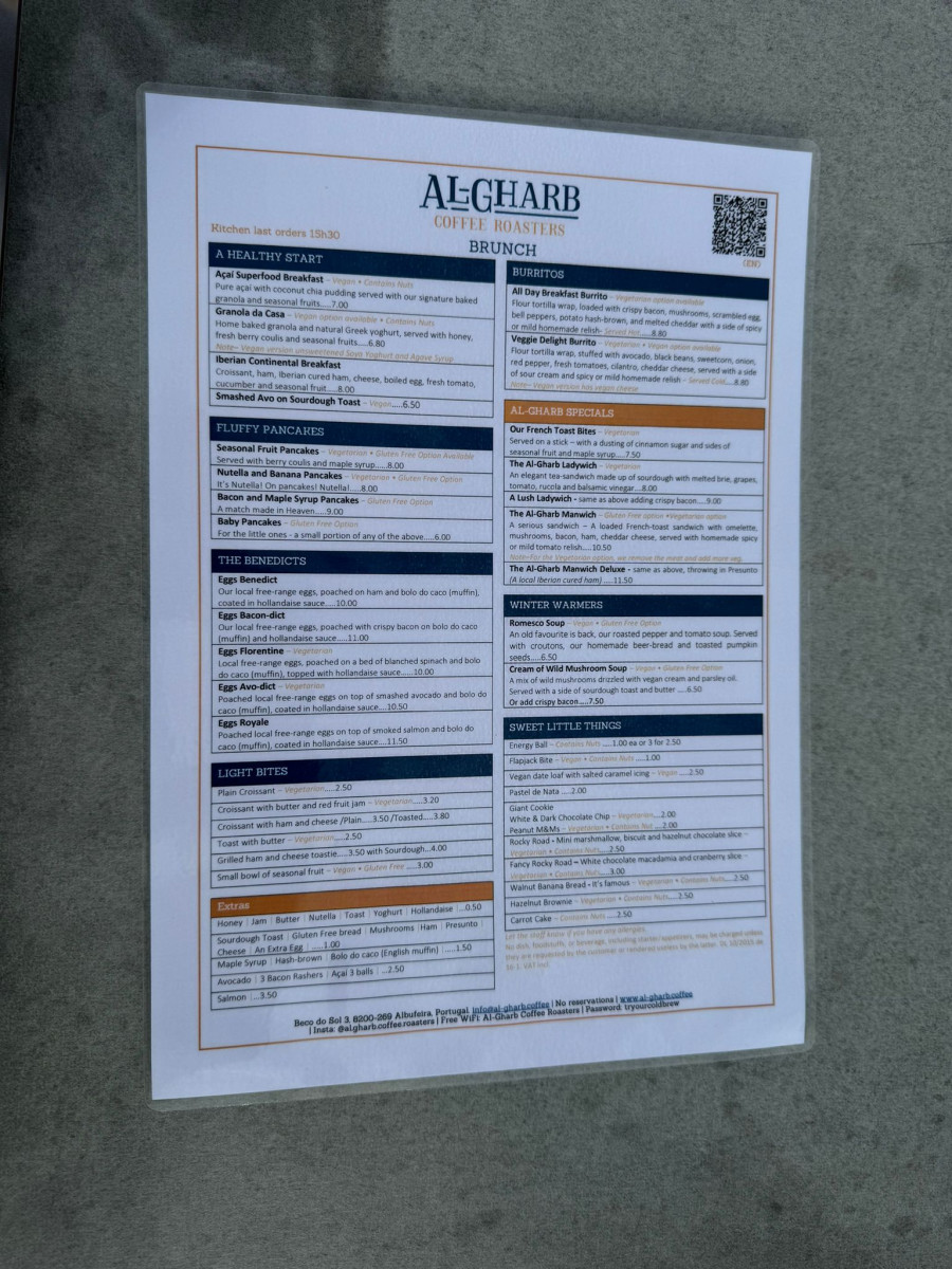 Al-Gharb is a hidden gem amidst the high-rise buildings of Albufeira, not far from the Aldi, and it's not hard to understand why it's always packed. It's the ultimate spot for breakfast, coffee, and lunch, and I'm a big fan!
