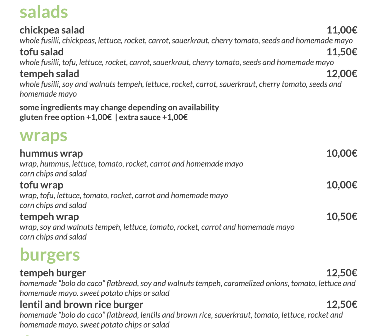 Vegan Menu of Vegan Restaurant Alfarrobe📜