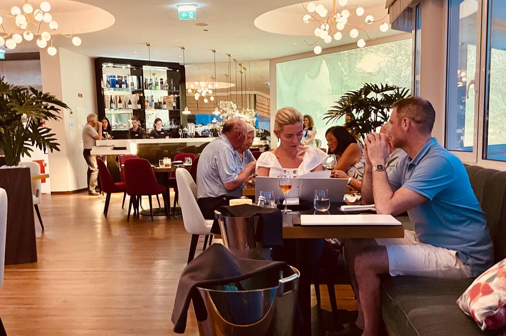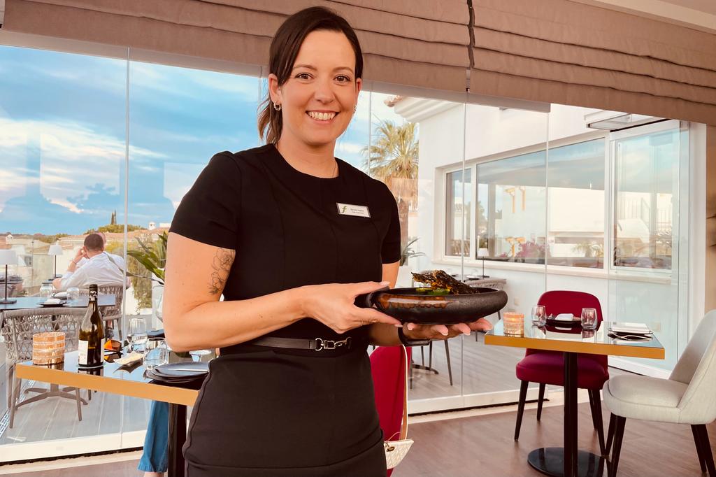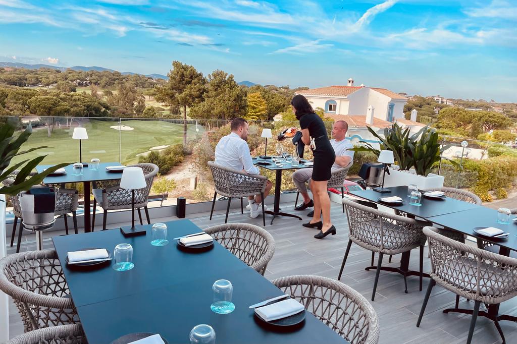 Upon arriving at Restaurant Amara, you're greeted with the warm embrace of its stunning surroundings. Located on the first floor, the restaurant offers a splendid view over the golf course that stretches before it. The discreet entrance is not a deterrent but rather a testament to the culinary journey that awaits. The reception is both friendly and professional, setting the tone for a memorable experience. Whether you choose to dine indoors, enveloped in the luxurious décor, or on the new roof terrace with its captivating sunset vistas, Amara's ambiance is a work of art in itself.