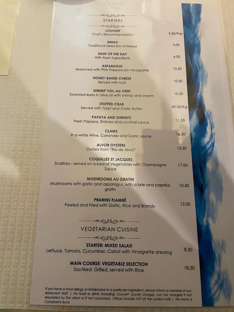 One important note: Aquário Bistro Restaurant Luz only accepts cash payments. As luck would have it, I had no cash on hand, but Sergio kindly allowed me to return the following day to settle the bill.