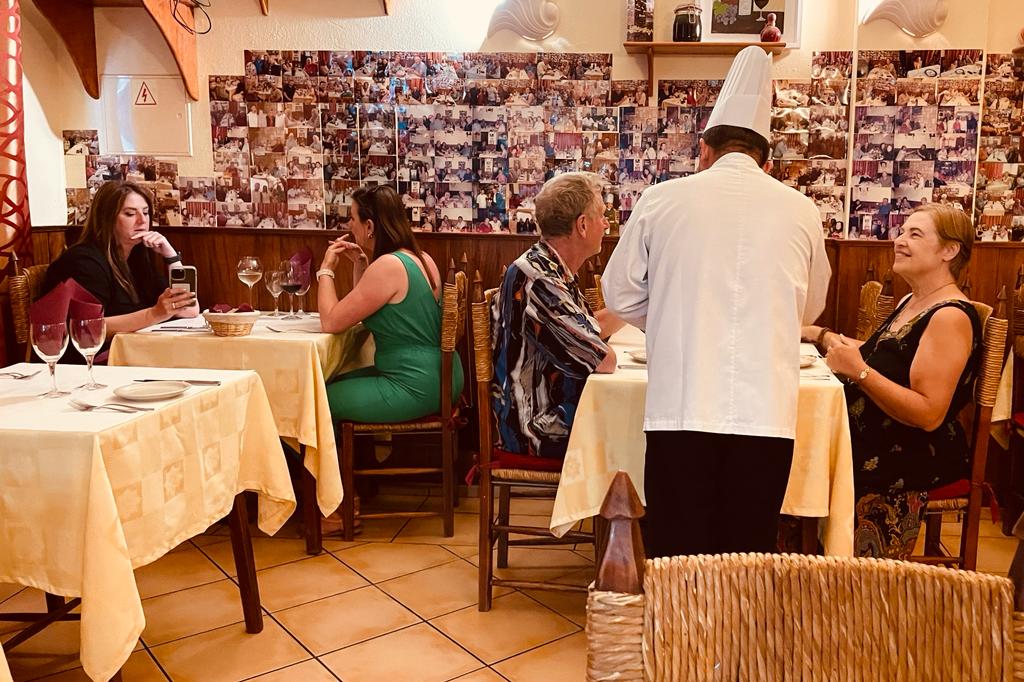 The decor is tasteful, embracing a bistro ambiance with wicker chairs and tiled floors. Wood paneling adorns the walls, adorned with hundreds of photographs capturing the memories of guests who have graced the restaurant over the past 20 years.