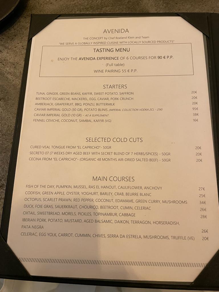 My culinary journey at Avenida was nothing short of outstanding. The Fennel Ceviche, a harmonious blend of flavors including coconut, sambal, and kaffir, was a perfect start. The Celeriac main course, adorned with a delectable risotto and Algarve salad, showcased a masterful fusion of textures and tastes. The dessert, while not entirely surprising, pleased the palate with Coconut, Rum, Merengue, Pineapple, and Lemongrass.