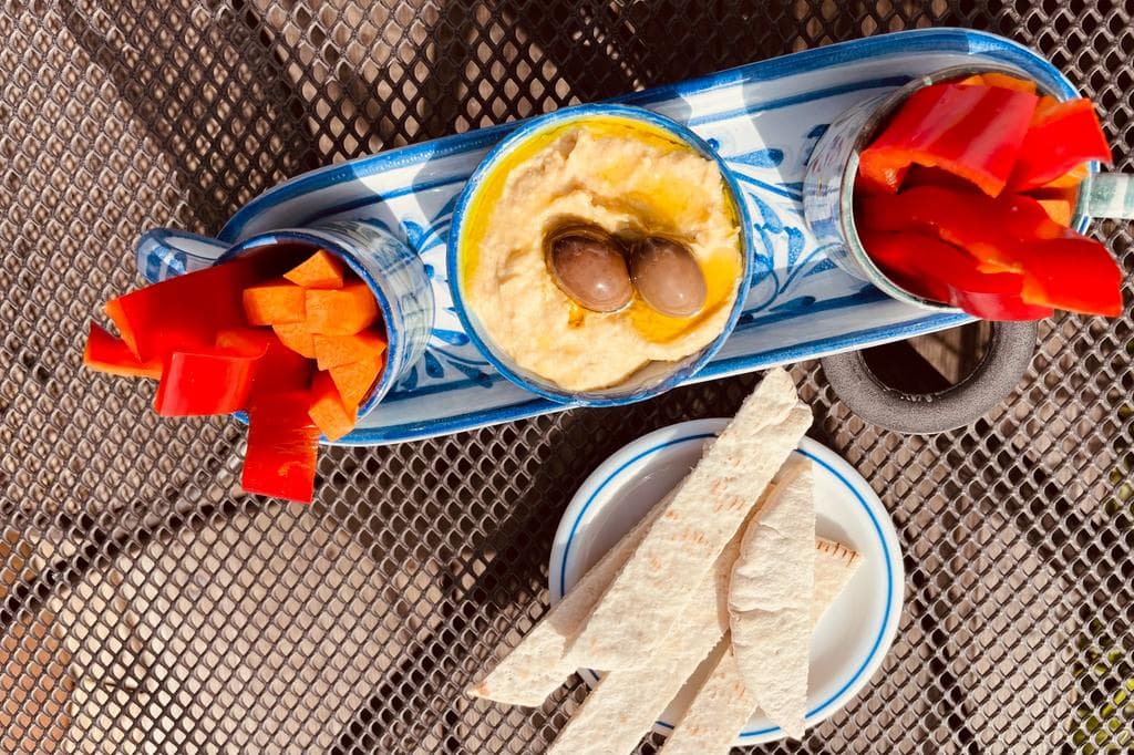 Tasty homemade lunch dishes, also vegan options such as hummus with pita bread.