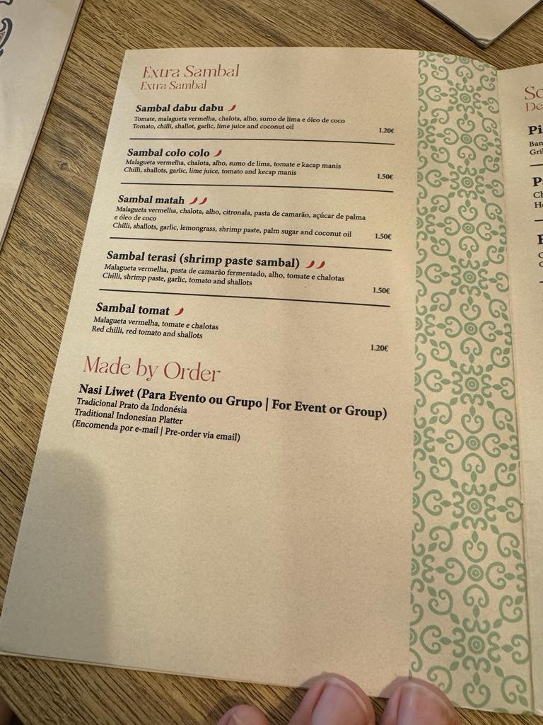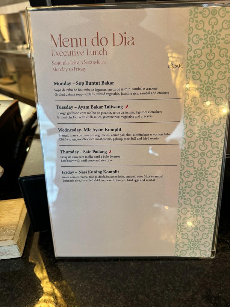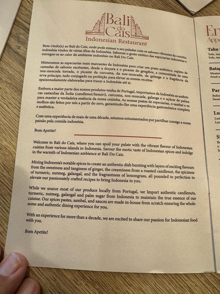 How thrilled we were to discover this restaurant! In the Netherlands, thanks to historical ties, you can find an Indonesian restaurant in every city, but here in the Algarve, there isn't one. Bali do Cais in Lisbon is a newly popular restaurant offering a comfortable and relaxing atmosphere.