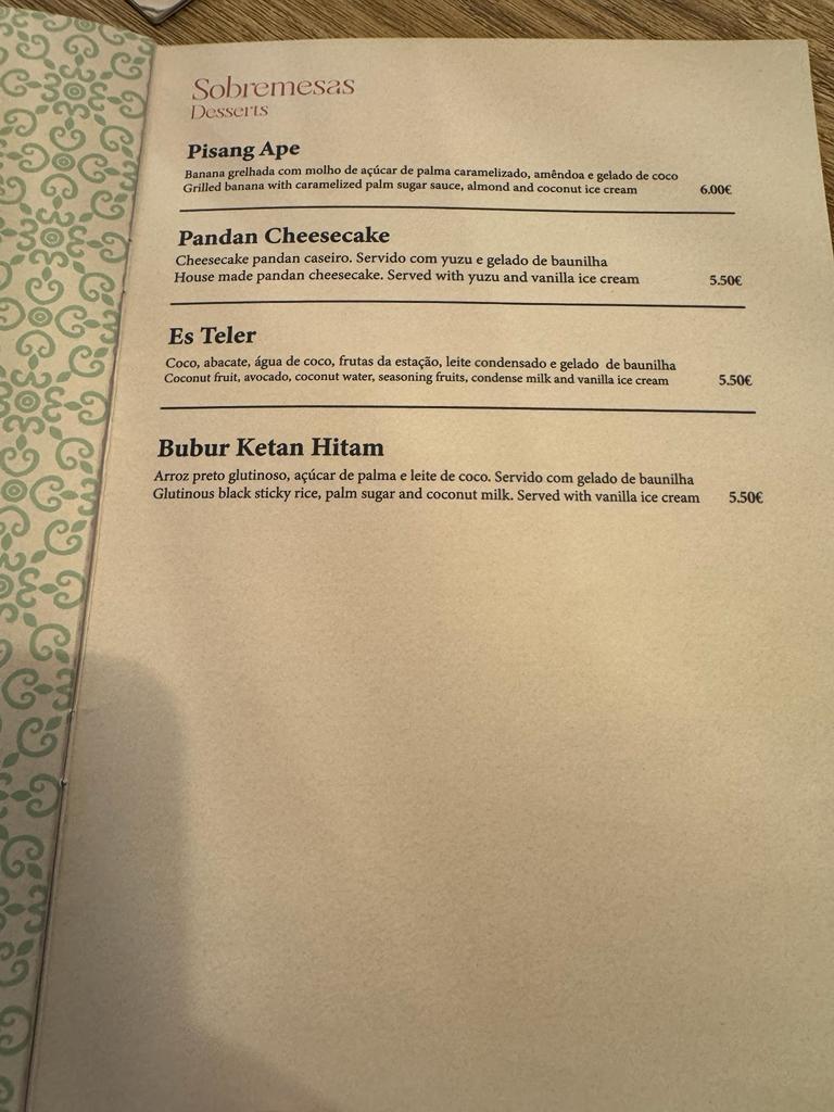A special mention goes to Bali do Cais's commitment to its roots, originally known as Zarzuela, by offering typical Lisbon sweets, all gluten-free. This, combined with the authentic Indonesian dishes, makes Bali do Cais a unique culinary destination in Lisbon.