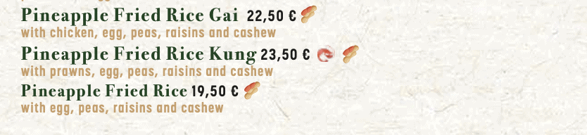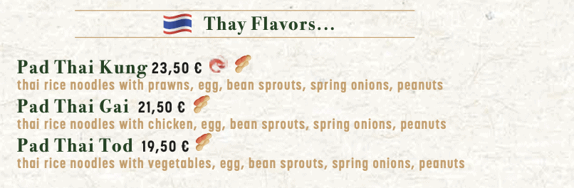 Mains from 20,50 (thai curry) to 60,50 (Wagyu).