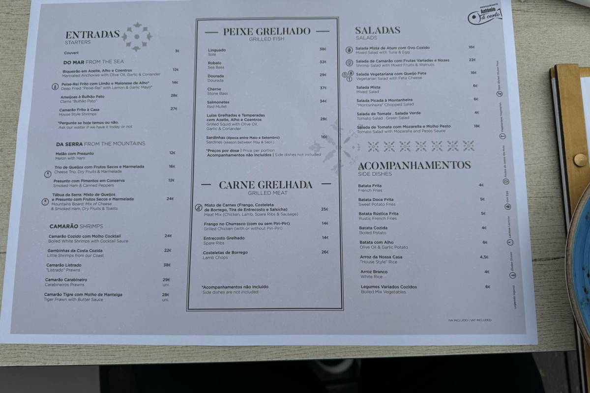 The menu at António Tá Certo Almancil is a celebration of taste and diversity. In addition to meat dishes like the grilled chicken with Siri Siri sauce (€14) and seafood options like the sole (€38), there are thoughtful choices for vegetarians and vegans.