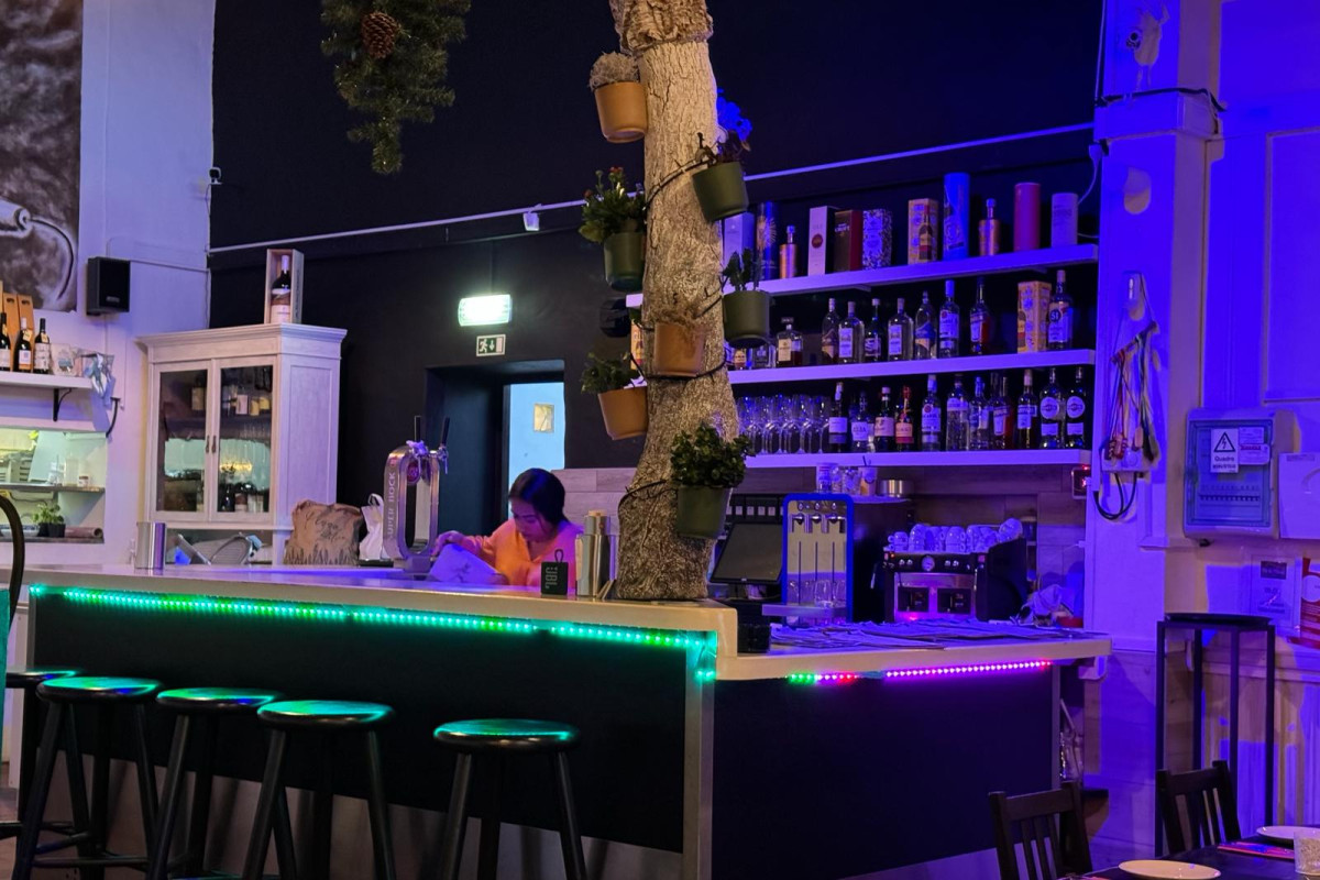 The interior is tastefully decorated, featuring a cozy bar and even a small stage for regular live music performances. For those who prefer some fresh air, there is also a terrace on the first floor.