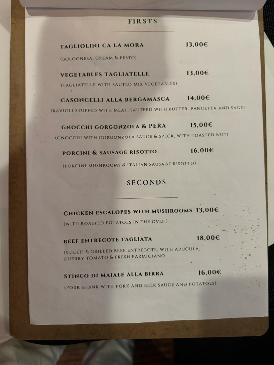 Both menus boast delicious Italian fare, with pizzas and pastas priced at just 12 euros.