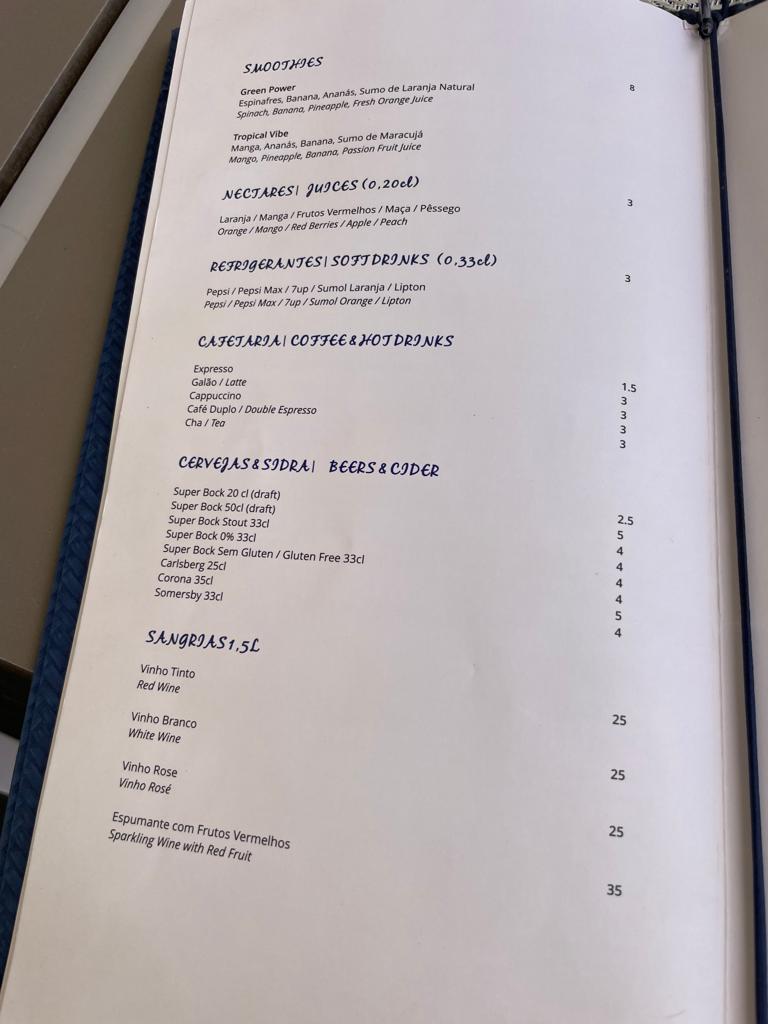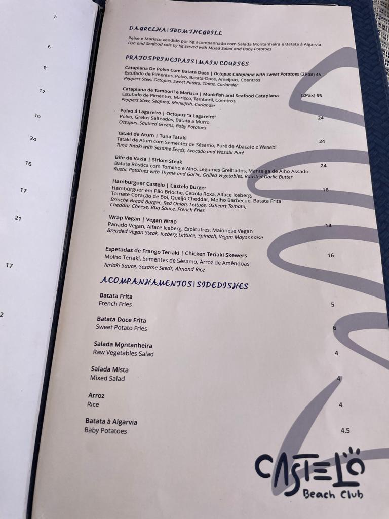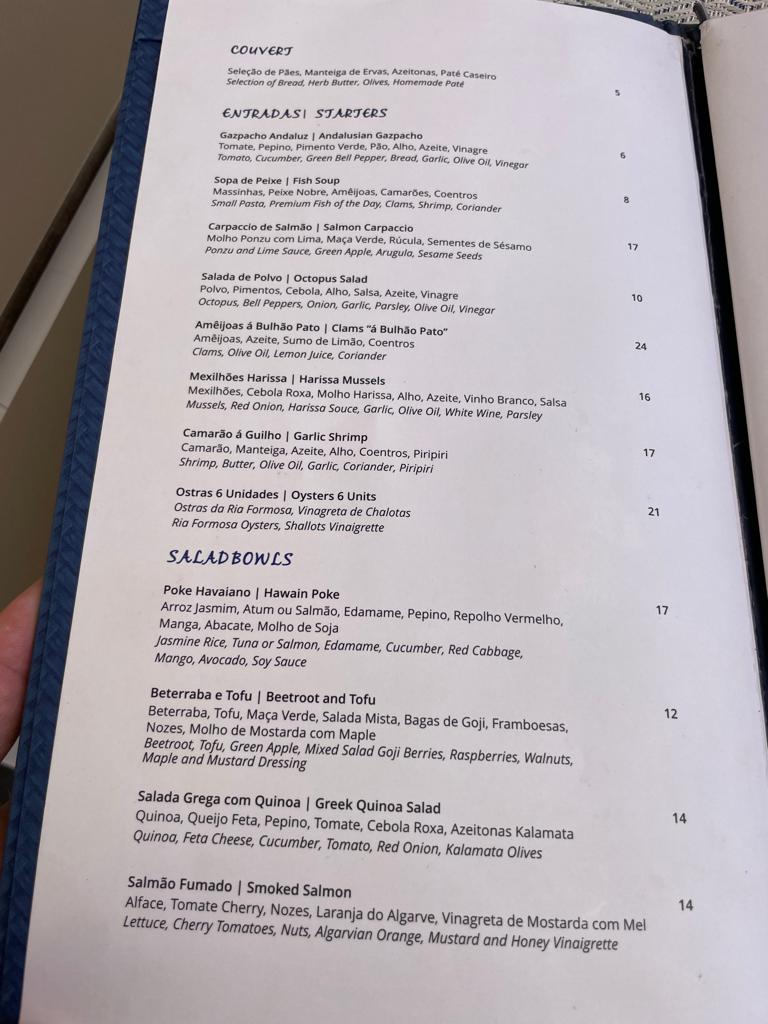 The menu showcases a diverse array of dishes, including Portuguese cataplana, tuna, and  steak, with prices starting at just 14 euros.