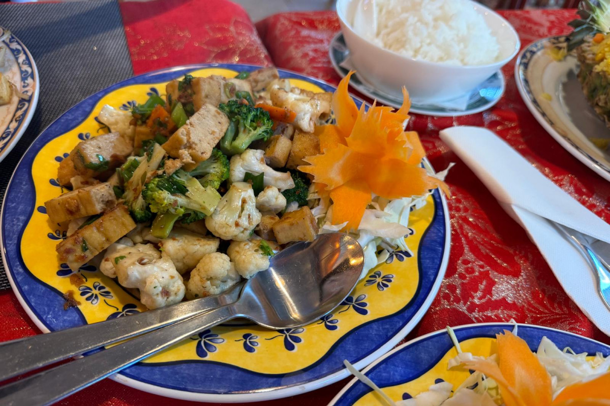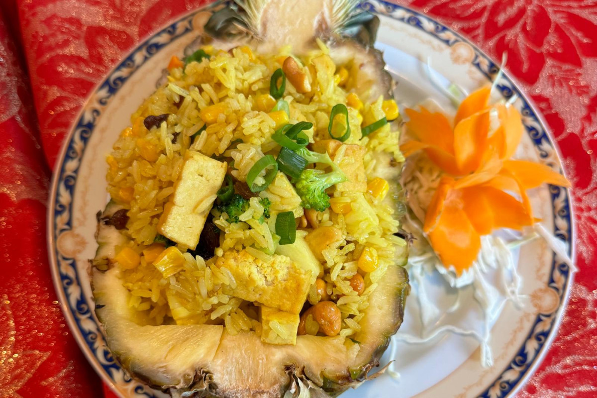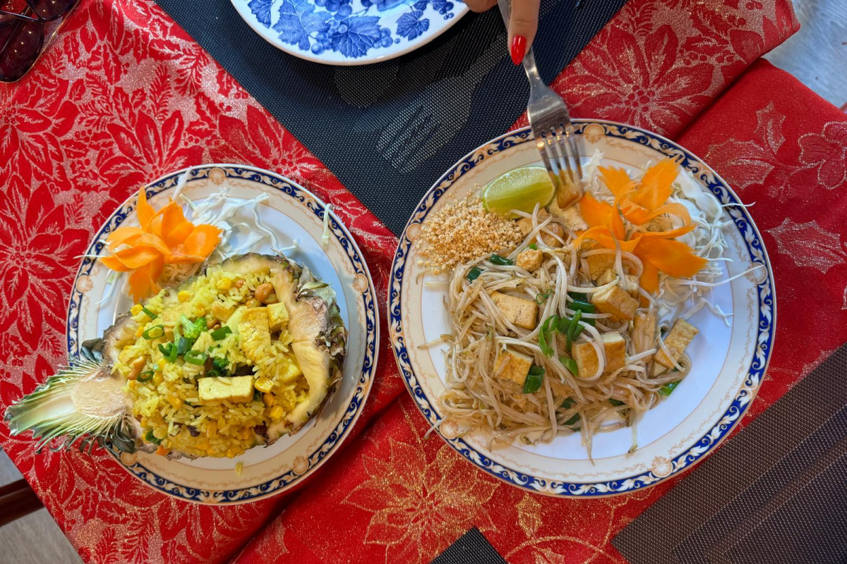 You'll find fresh spring rolls (€5.50), green curry with tofu (€25.50), and for (fruit) lovers, the lovely pineapple fried rice with tofu (€15.50) is highly recommended. Or try the red curry with tofu (€15.50), full of flavor and perfectly spicy.