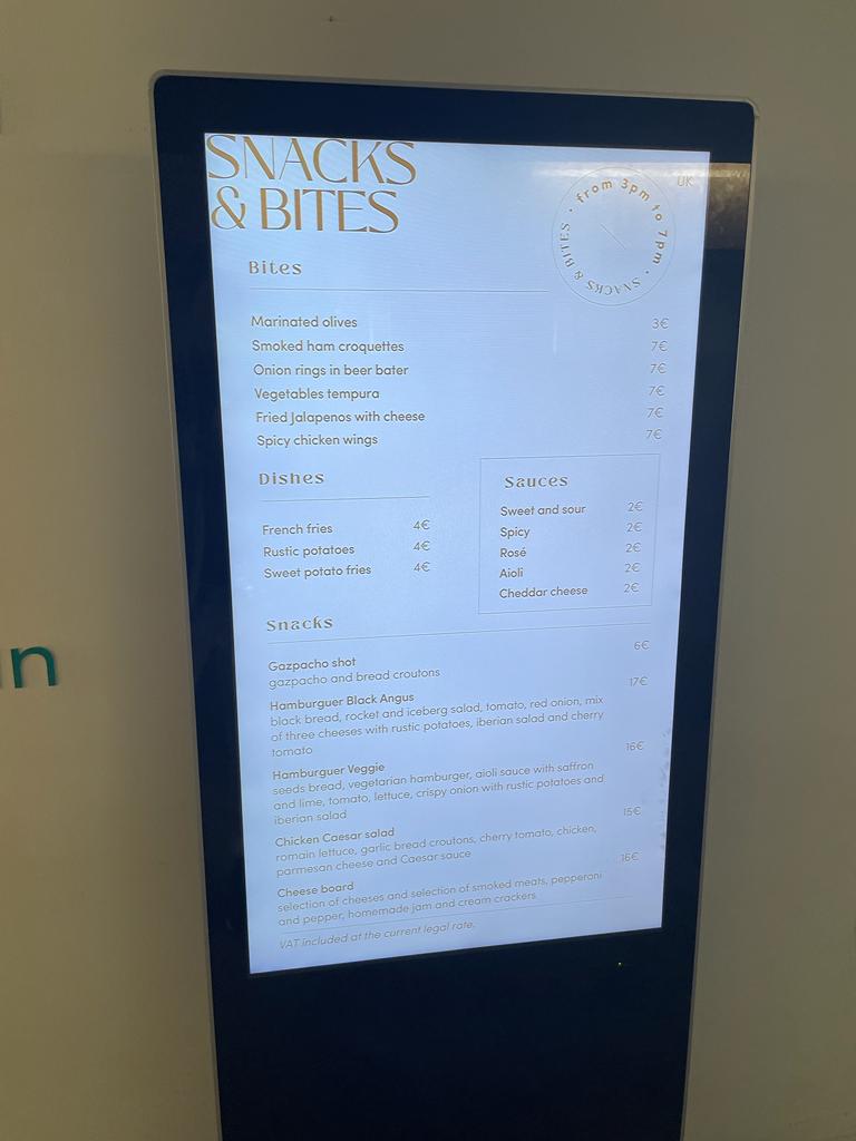 Also tapas like olives, onion rings, vegetable tempura, and fries.