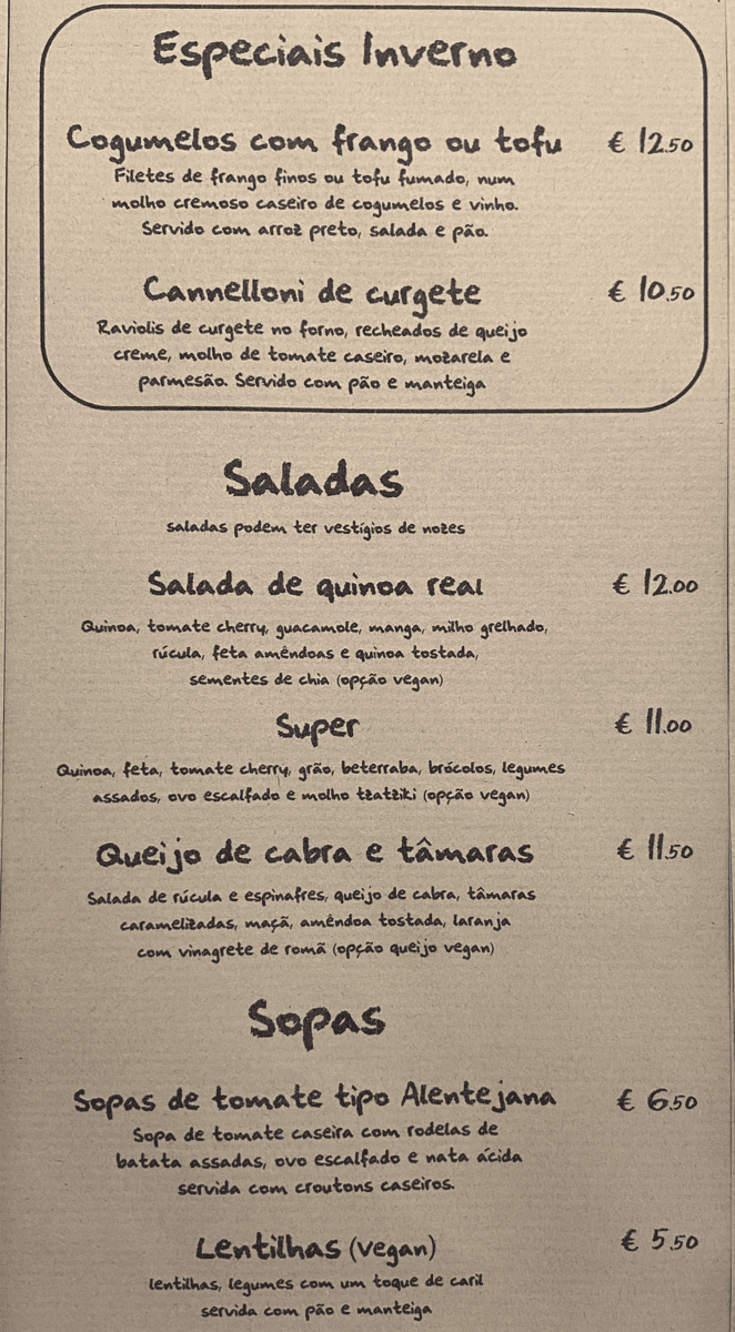 Everything fresh and healthy! Many vegetarian, vegan and gluten-free options!