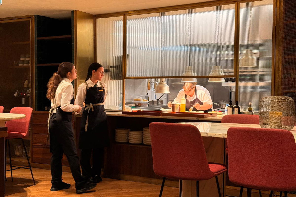 The interior feels elegant and contemporary without being sterile. There’s plenty of light, warm tones, and natural materials. The semi-open kitchen adds a personal touch — you can actually watch Chef Rafaela Ferreira and her team at work, which makes the whole experience come alive. The young, friendly staff completes the picture: relaxed, smiling, and genuinely attentive.