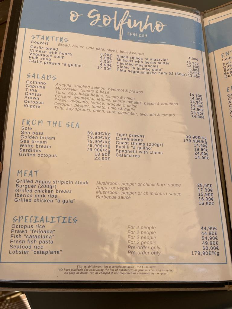 For those with dietary preferences, there are also two vegan options: a tantalizing tofu salad for 14.90 and a delectable vegan burger priced at 17.90. The food served at Golfinho is straightforward but undeniably enjoyable, and while the prices are fair, it's important to keep in mind that the allure of the beachfront location does contribute to the overall cost.