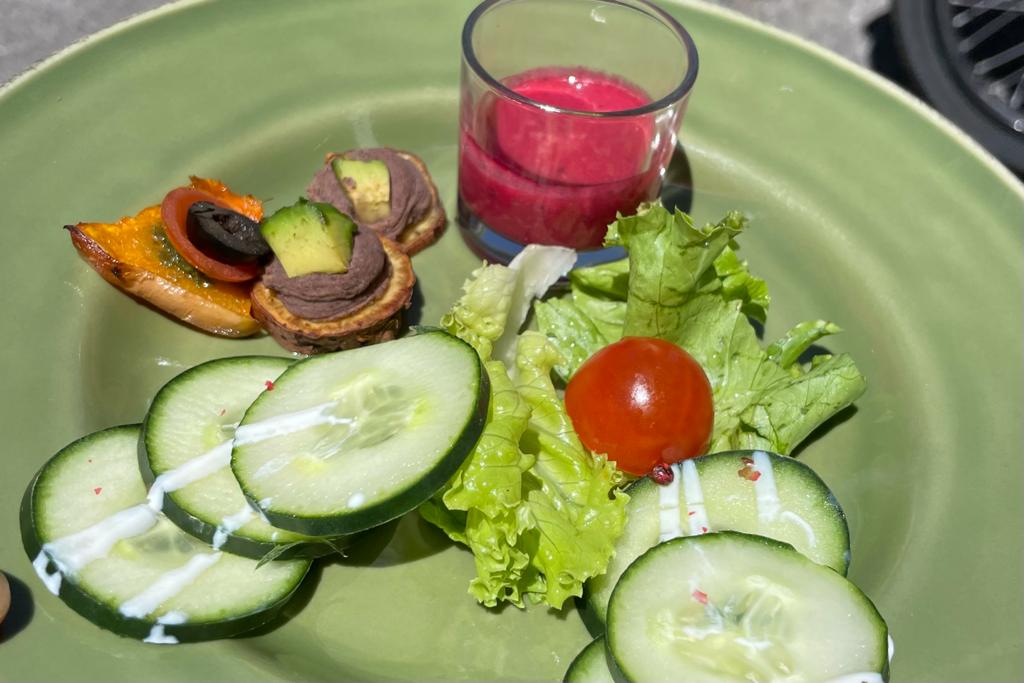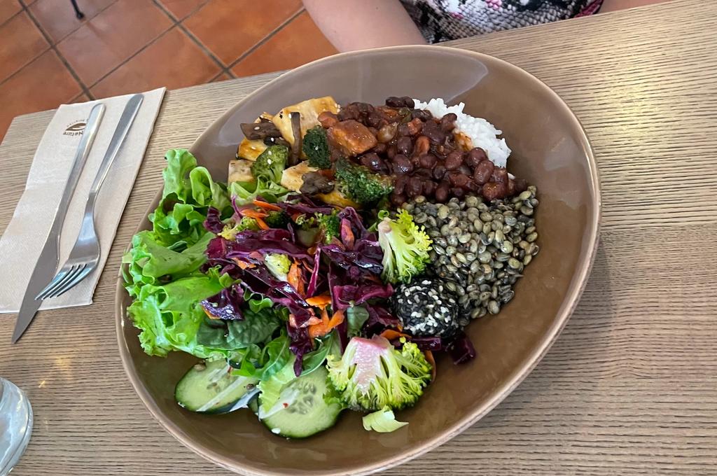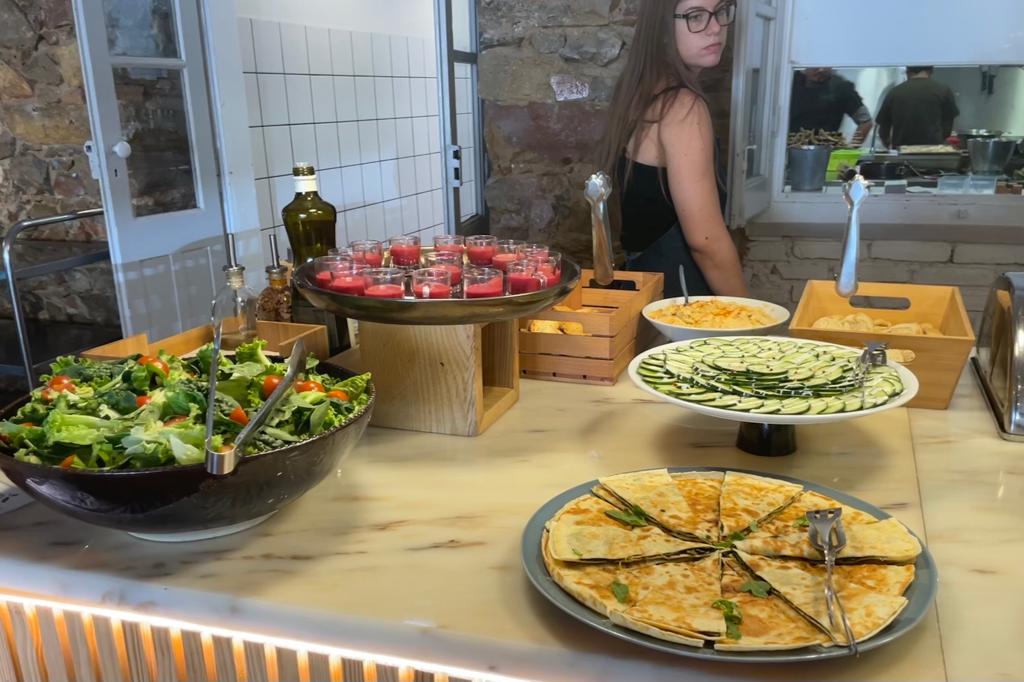The concept of this café is truly one of a kind, combining a historic setting with a focus on healthy cuisine. The buffet presented an array of 23 vegetarian dishes, featuring an abundance of salads, vegetables, and proteins such as tofu, lentils, and beans.There are also many glutenfree options.