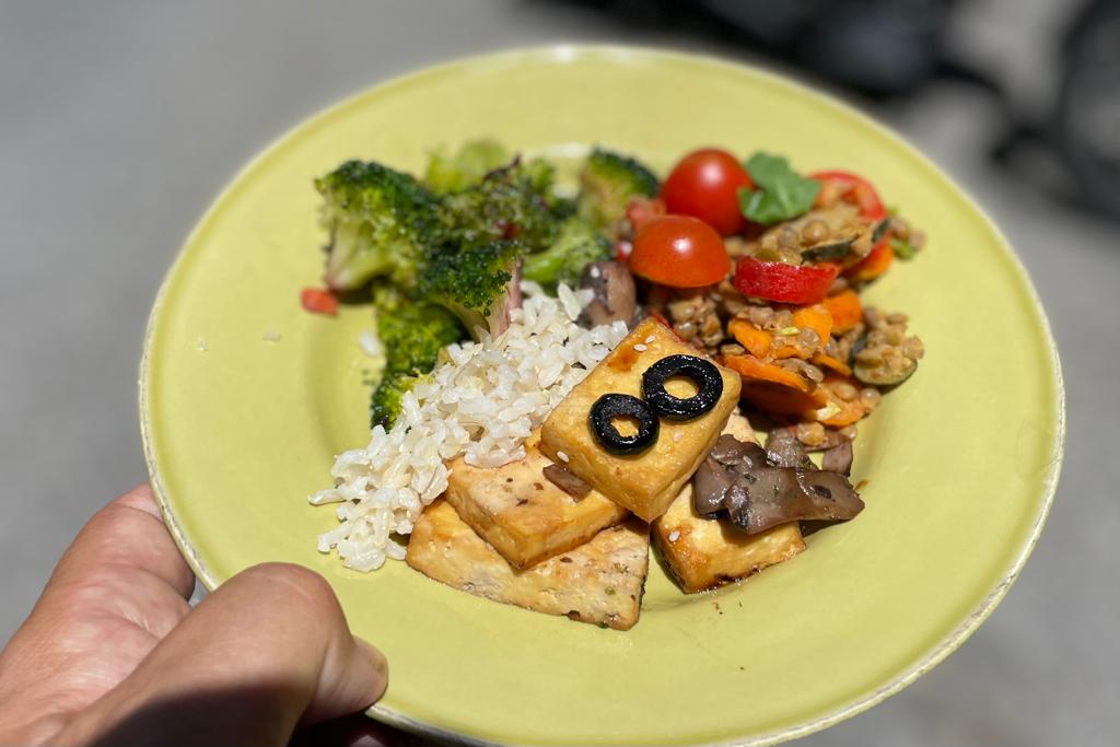 For our brunch, we started with a superbly flavorful carrot soup accompanied by freshly baked focaccia bread. The appetizers that followed were equally delightful and tantalized our taste buds. Our main course featured fried tofu paired with an assortment of vegetables and rice, forming a harmonious and satisfying combination.