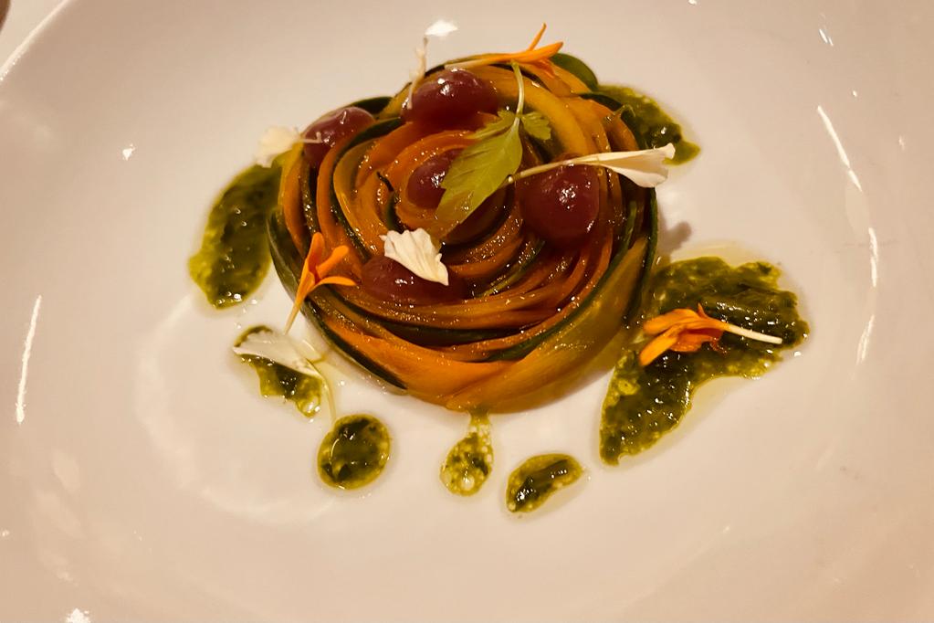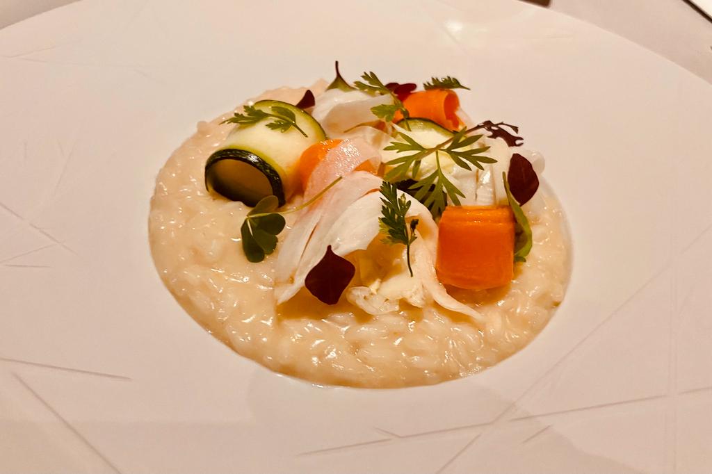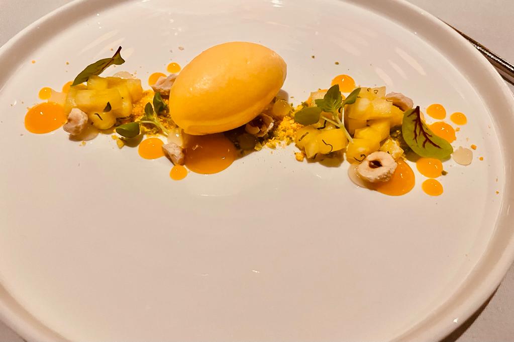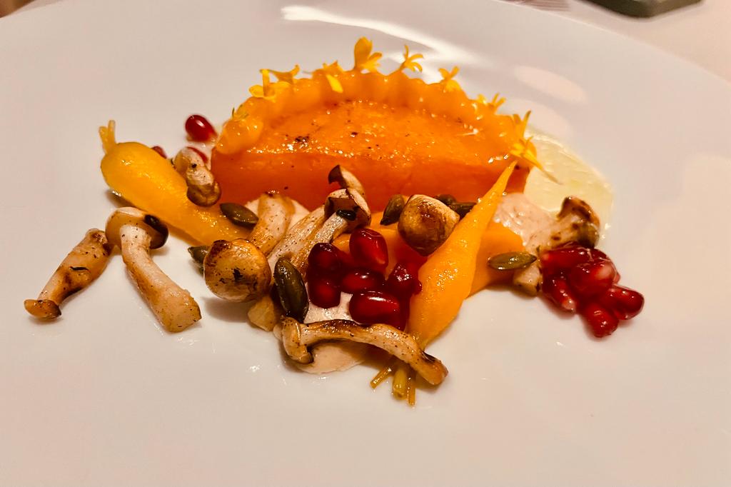 As you dive into the tasting menu, you're treated to a symphony of flavors. Starting with 4 tantalizing amuse-bouches, the journey advances to the exquisite cauliflower dish, a pure and magical indulgence. The vegan risotto that follows is a revelation in taste, while the mushroom course boasts layers of delectable flavors. The culinary crescendo peaks with a pumpkin preparation that's nothing short of sublime. Desserts – including a pear with lime sorbet and a captivating mango-pineapple finale – leave a lingering sweetness.