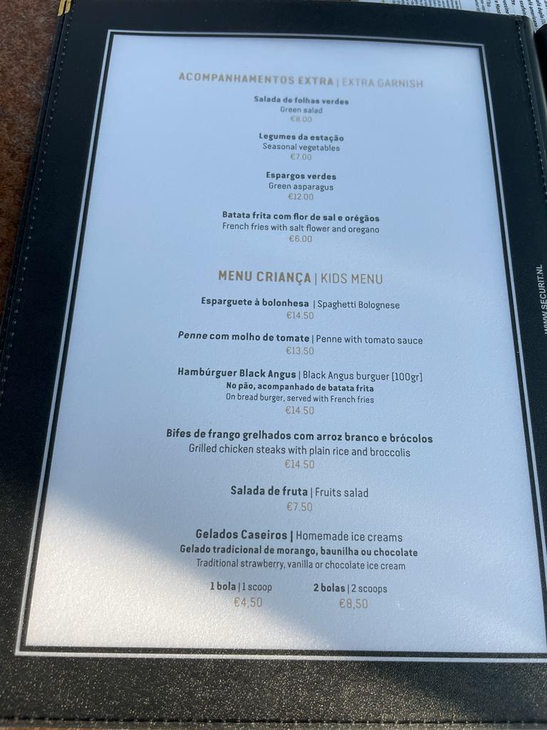 Starters from 7 euros, main courses 18.50 dessert from 7.50