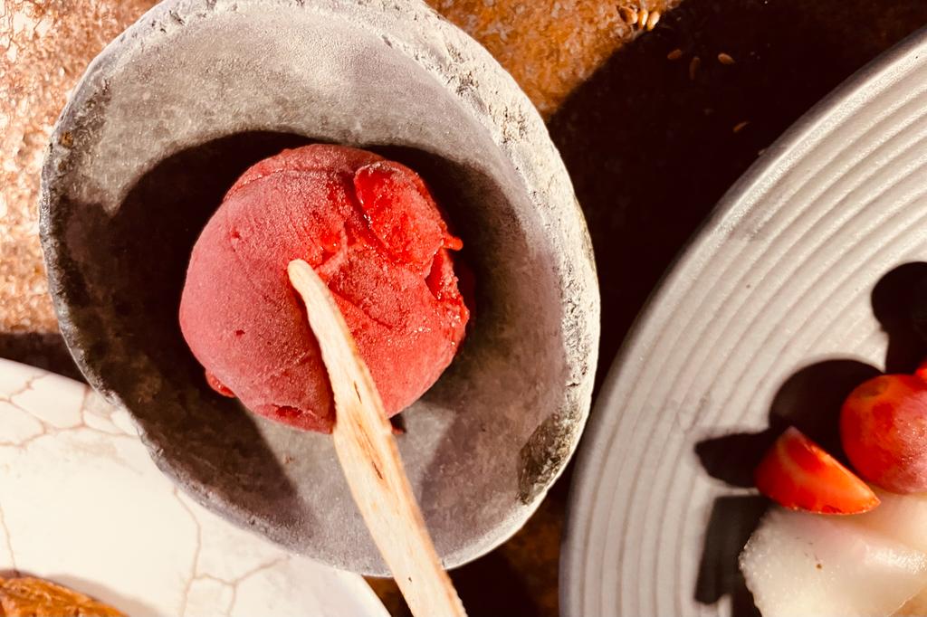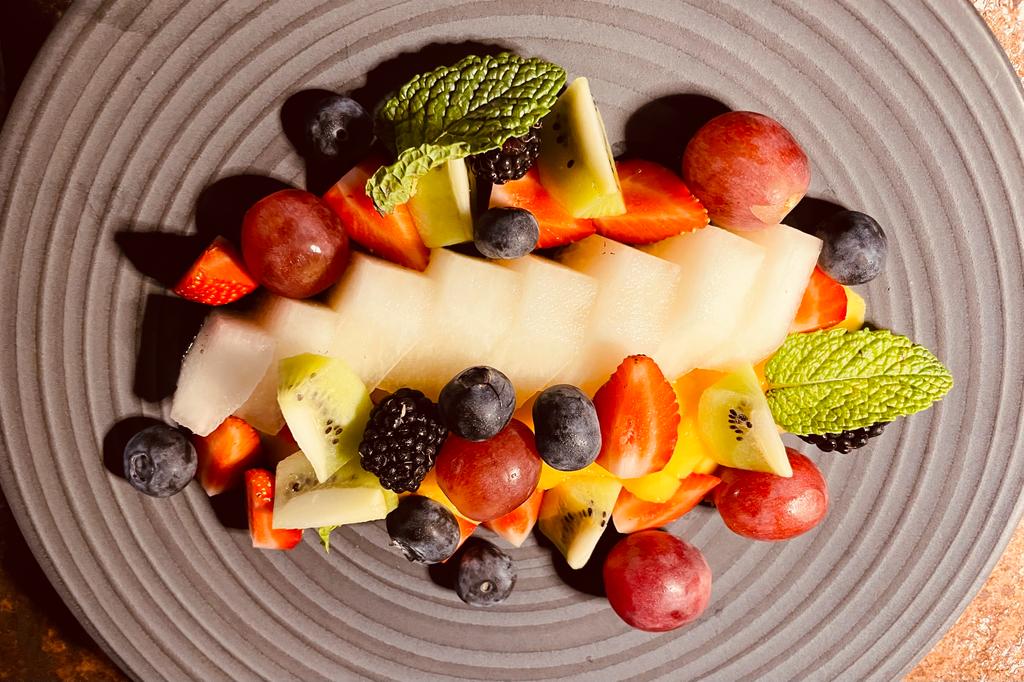Also the dessert was delicious: Pere pie, raspberry ice cream and fresh fruit salad.