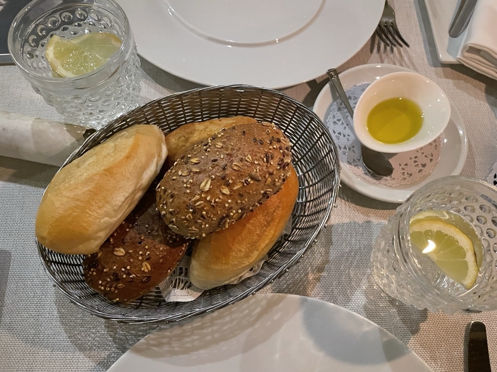 We start with a beautiful basket of bread, a regular version, and a gluten-free version.