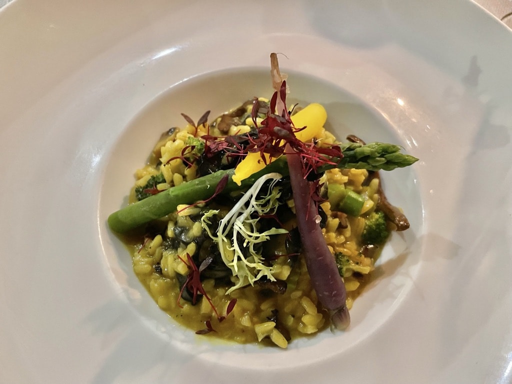 The 8-course tasting menu costs 110 euros and, if reserved a few days in advance , is also available as a vegan variant.
