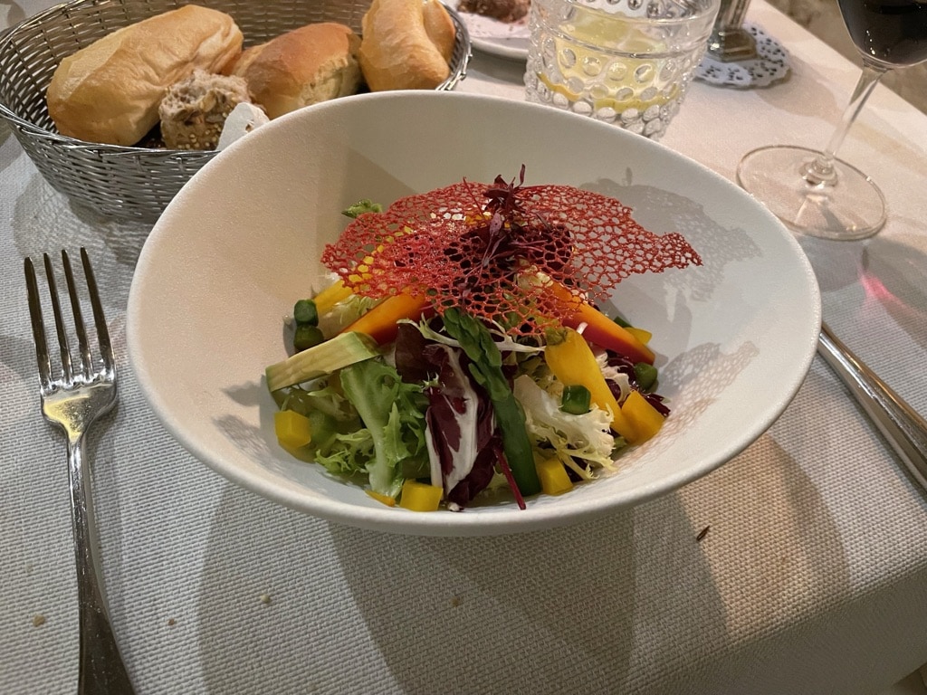 As a starter we have a colorful, but simple salad. You would expect better at this level.