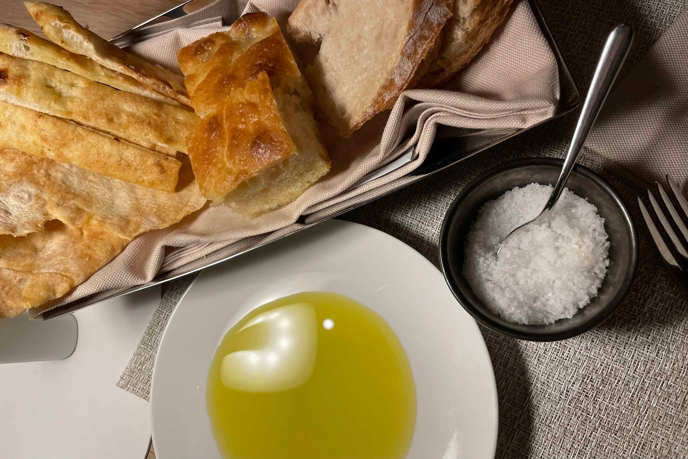 After the delicious wine (Vale Escadas ) has been poured (perhaps the best wine I've ever drunk, specially made for W-Algarve hotel), we get a basket of bread (really super tasty bread) and a delicious gluten-free sandwich for Elyas . Then the gaspacho (8 euros) served. The best I've had too!
