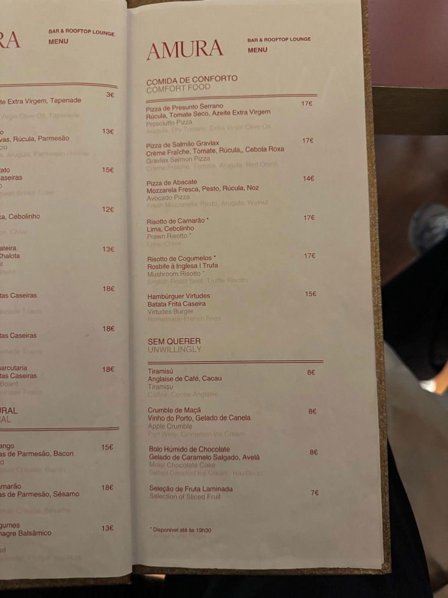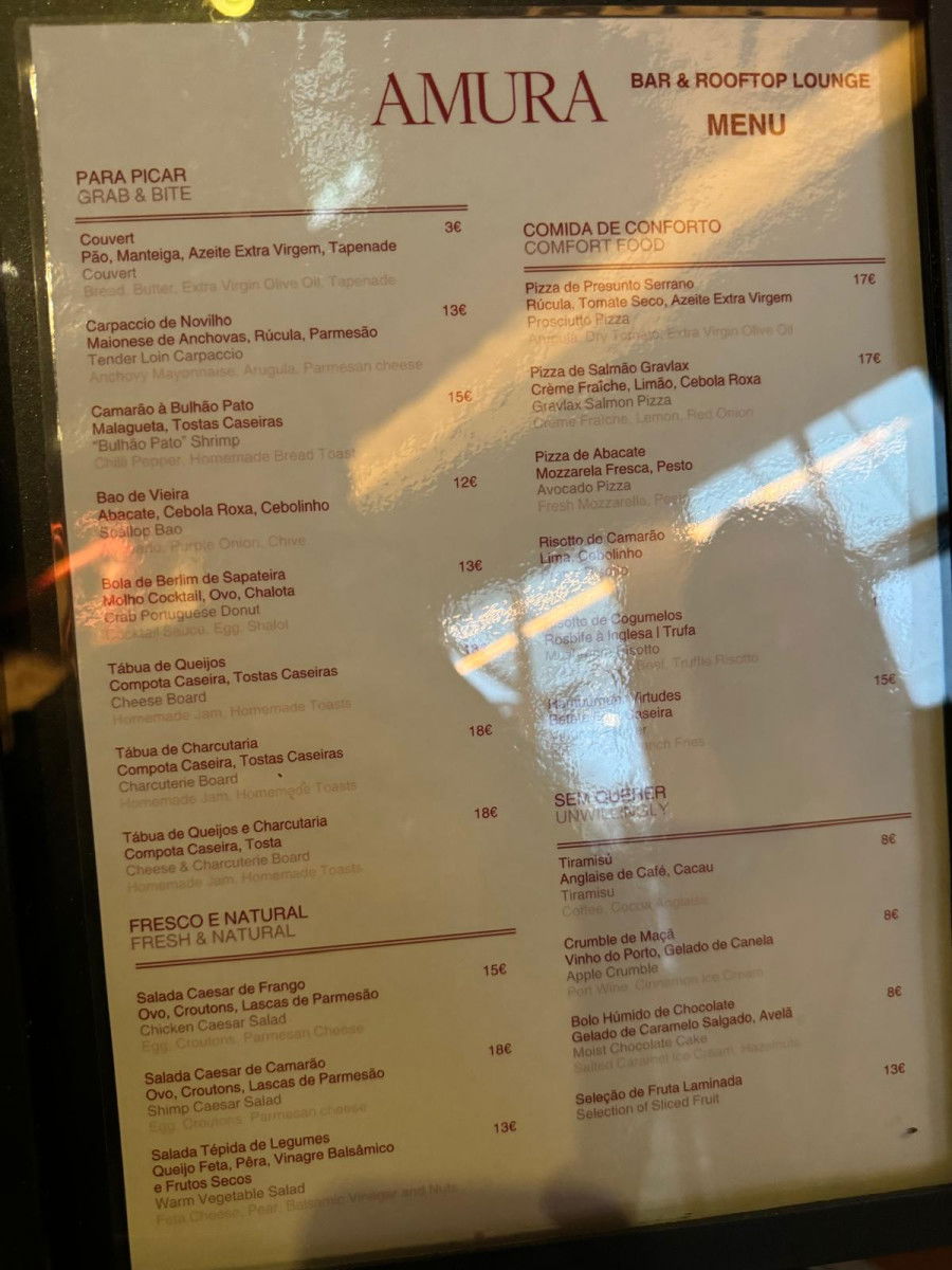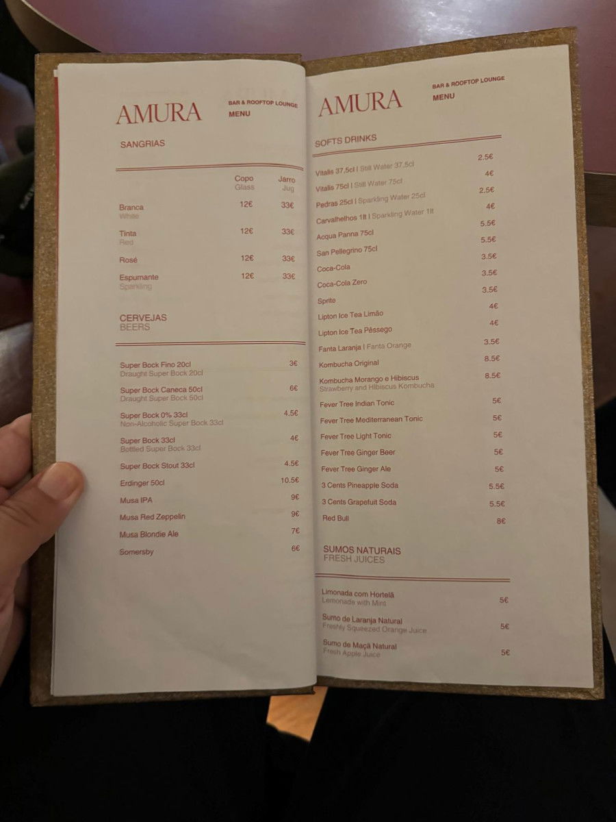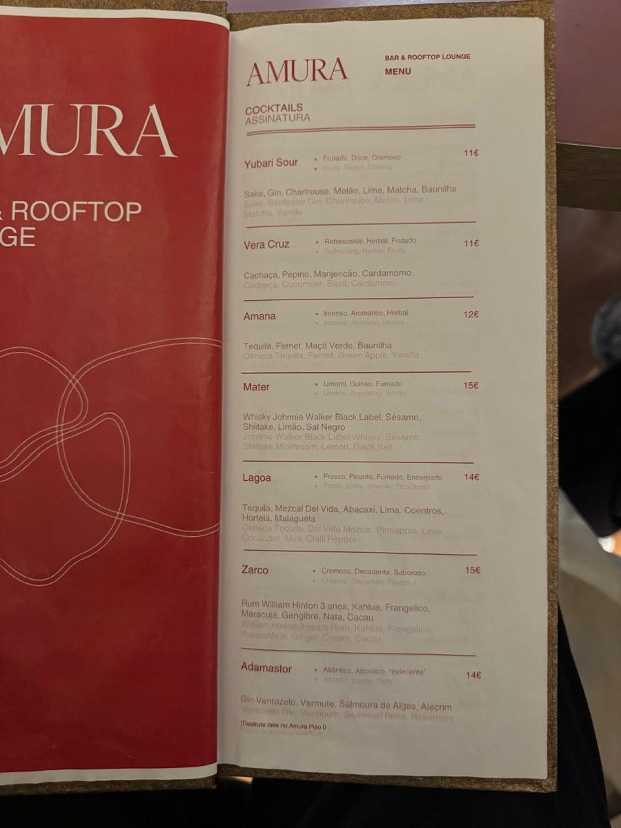 Amura Cocktail Bar, located inside Hotel das Virtudes, offers a luxurious and unique experience for anyone looking to escape the city’s hustle and bustle. It’s the perfect spot to unwind with a delicious cocktail like an Aperol Spritz, Bloody Mary, Espresso Martini, or a refreshing Moscow Mule, priced between €10-13. With calm music and a relaxed vibe, Amura is the ideal place to recharge after exploring the city.
