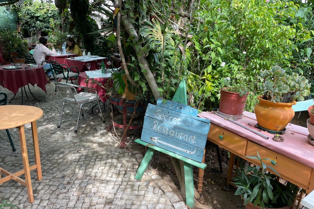 Tucked away behind an unassuming façade lies a charming secret garden restaurant in Tavira, Portugal, known as Restaurante Jorge e Lia.
