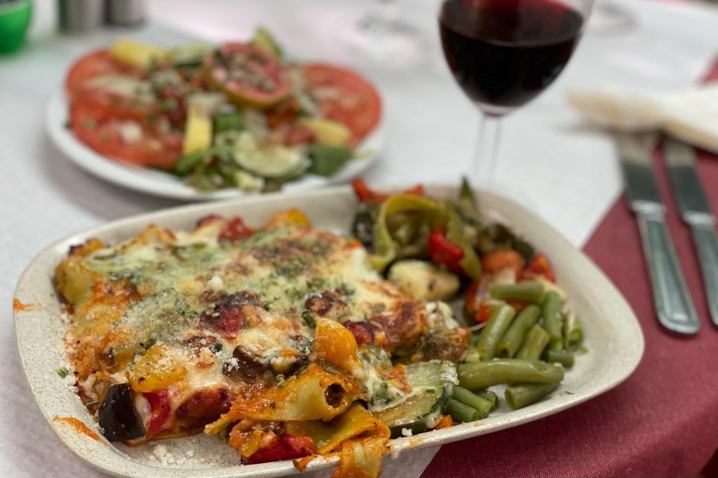 The menu features meat and fish dishes, with vegetarian options available upon request – their lasagne is a must-try!