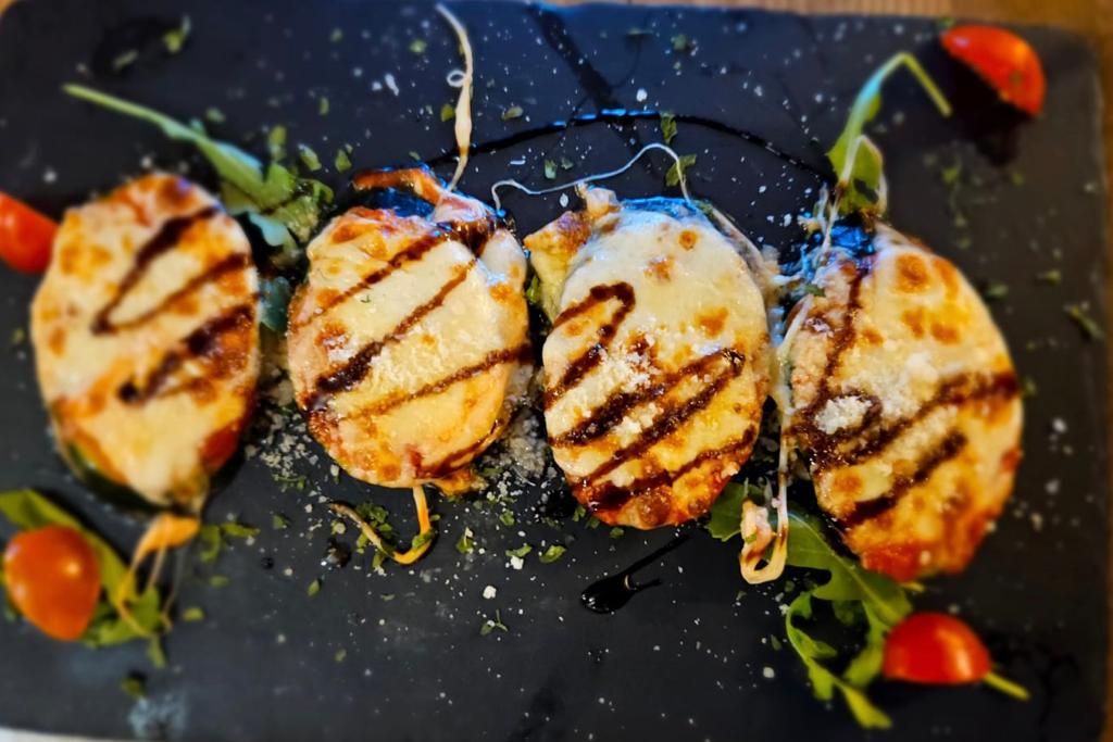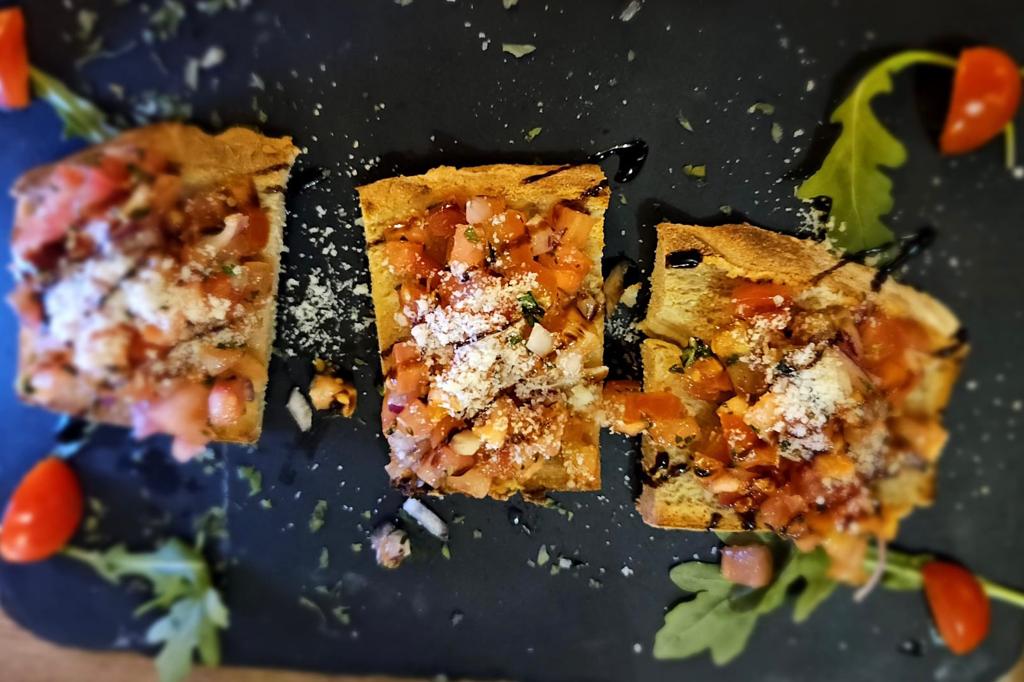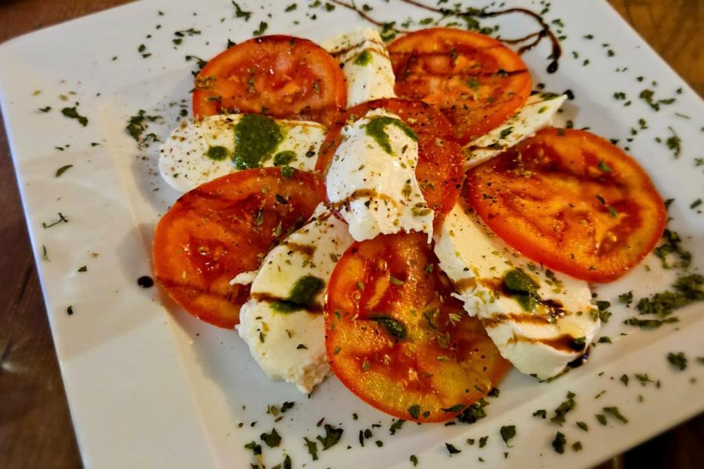 The menu is rich with delicious appetizers, including bruschetta, salads, carpaccio, and parmigiana.