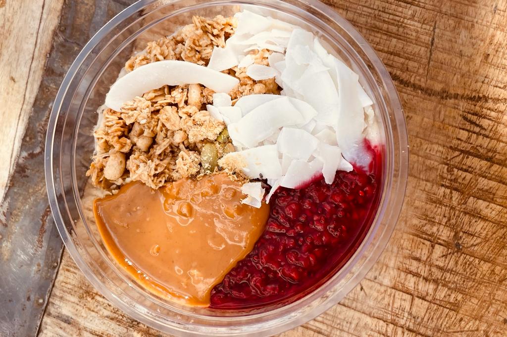 Despite its small menu, Lahana packs a punch with its offerings. Enjoy coffees (starting at 2.90), bowls (12.50), smoothies (8,-), and the delectable overnight oat with peanut butter and compote (8,-). Just one downside: everything comes in disposable packaging, even if you're dining in.