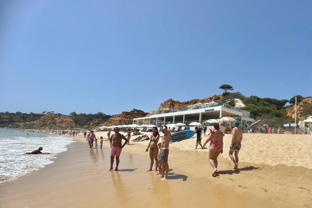 Maré Beachclub at Pine Cliffs Resort is undeniably a beautifully crafted luxury beach pavilion, situated right in the heart of the Praia da Falésia beach, offering breathtaking views from three sides. Accessing the beach club can be an adventure in itself, with the option to walk along the sandy shores or embark on a thrilling descent down a tall wooden staircase or elevator from the hotel grounds.