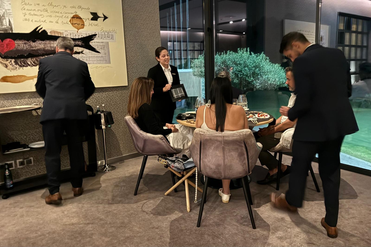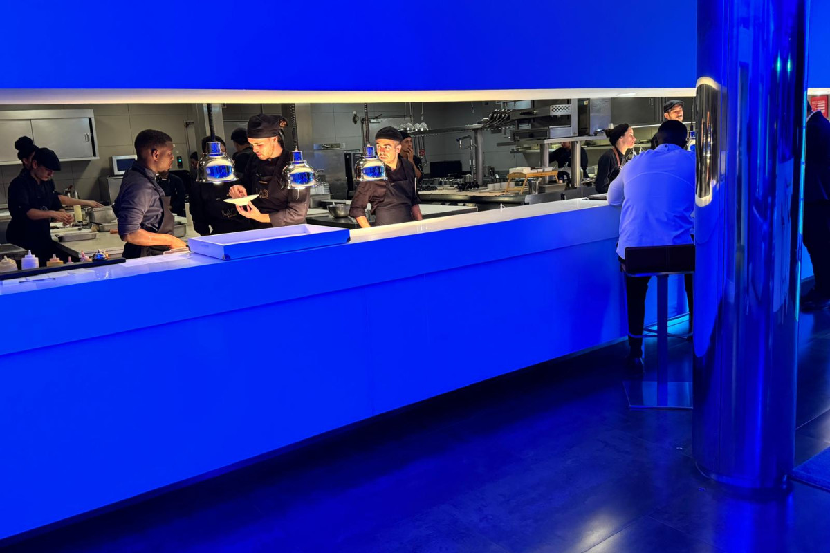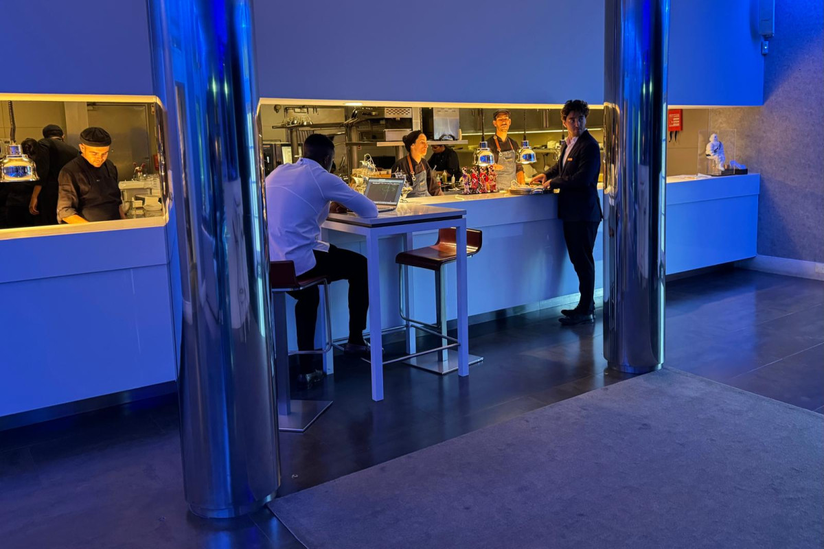 The impressive glass wine cellar and open kitchen give you a view of the passion and craftsmanship behind each dish. The lounge next to the open kitchen, where 12 young chefs are hard at work, is the perfect place to enjoy an aperitif while a DJ sets the mood with atmospheric music 🎶. This combination of history, modern design, and culinary perfection truly makes LAB Michelin Star Restaurant Lisbon one of the best fine dining restaurants in Portugal.
