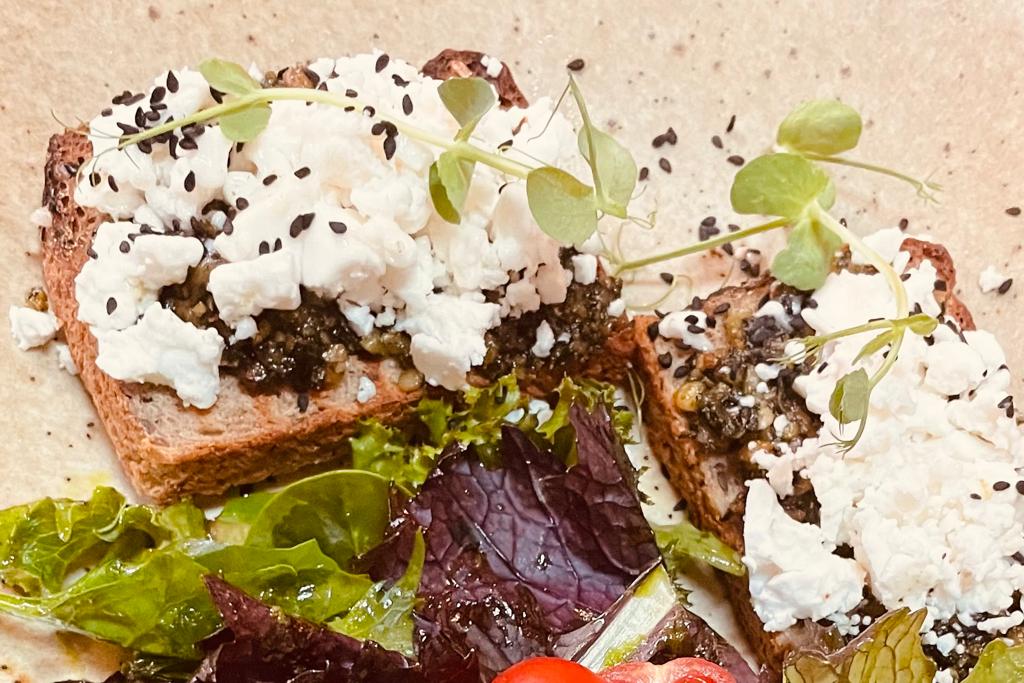 The menu has tasty vegan dishes like tempeh burger (14.10), lasagne with vegan mozzarella(11.80) and sandwich with pesto and vegan feta (7.50).