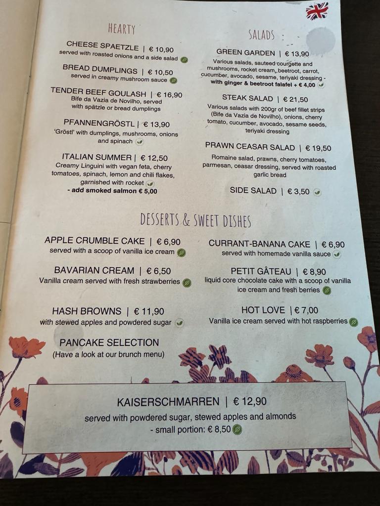 For brunch, they offer various choices, and a special brunchmenu for two (€39.90) (regular, vegan or vegetarian).