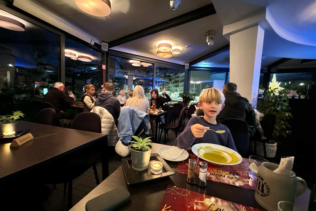 The clientele is diverse, ranging from young families to older individuals. On an evening when the power went out every 10 minutes, it created a special bond among the guests, almost like a belated Christmas Eve, illuminated by candlelight, making the evening even cozier.