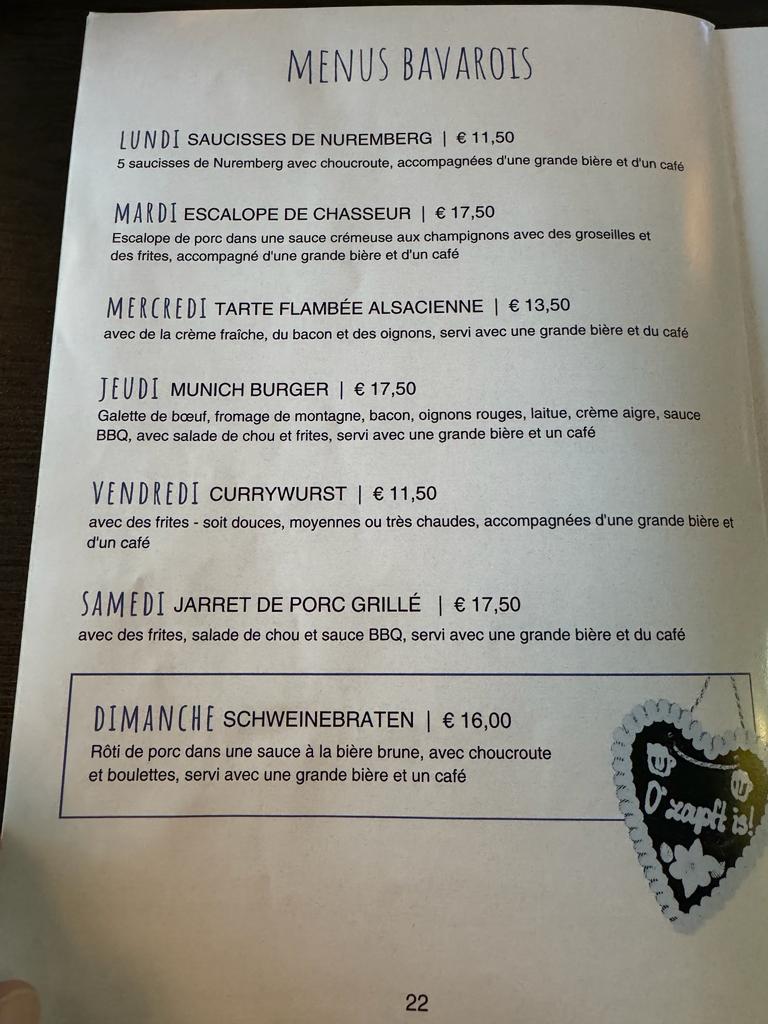 While the decor is modern, the menu takes you straight to Germany. Here, you'll find classics like the famous German bratwurst (€8.90) and schnitzels (starting at €15.90) that will tantalize your taste buds. And when you order beer, expect to receive a mega-sized beer glass, just like in Bavaria.