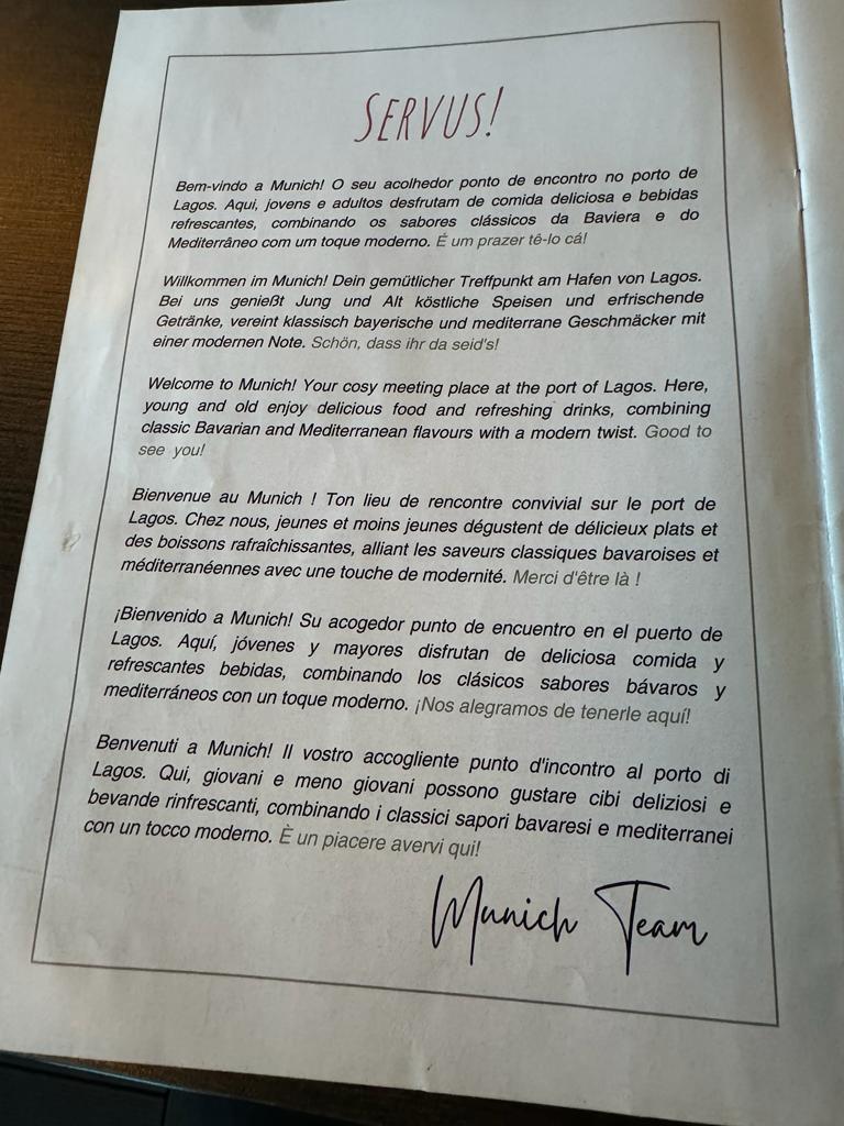 Munich German Restaurant, located at the beginning of the bustling Avenue dos Descobrimentos boulevard in Lagos, offers a unique dining experience.